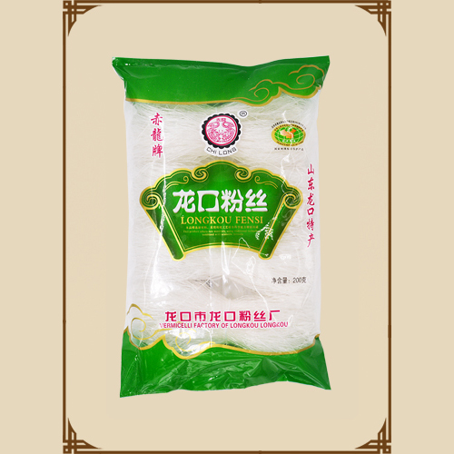 龍口市龍口粉絲廠采用先進的生產工藝,以優質綠豆,豌豆為原料精制而成,絲條細勻,潔白透亮,富有韌性,口感滑爽,營養豐富,食用方便,是家庭及飲食熱烹、冷拌之選,本廠一貫堅持“用戶至上”信譽為本”,主要生產“赤龍”牌龍口粉絲和“魯龍樂園”牌龍口粉絲,品質優良,美味可口,長期食用可健身益壽。