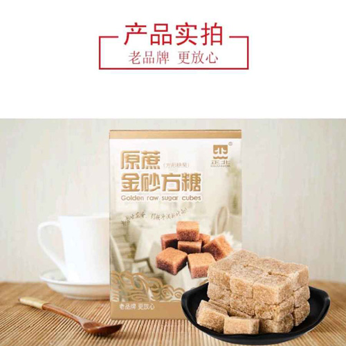 原蔗金砂方糖沖飲新時尚帶來新體驗使用原料100%優質無公害甘蔗提取色澤口味獨特干吃沖調全新休驗精選天然無公害的甘蔗壓榨出甘蔗汁,潔凈后清除雜質結晶再經專利生產線精制而成,保存了甘蔗特有的香味和豐富的營養,并且保留了鈣、鎂、鐵等多種天然礦物質。