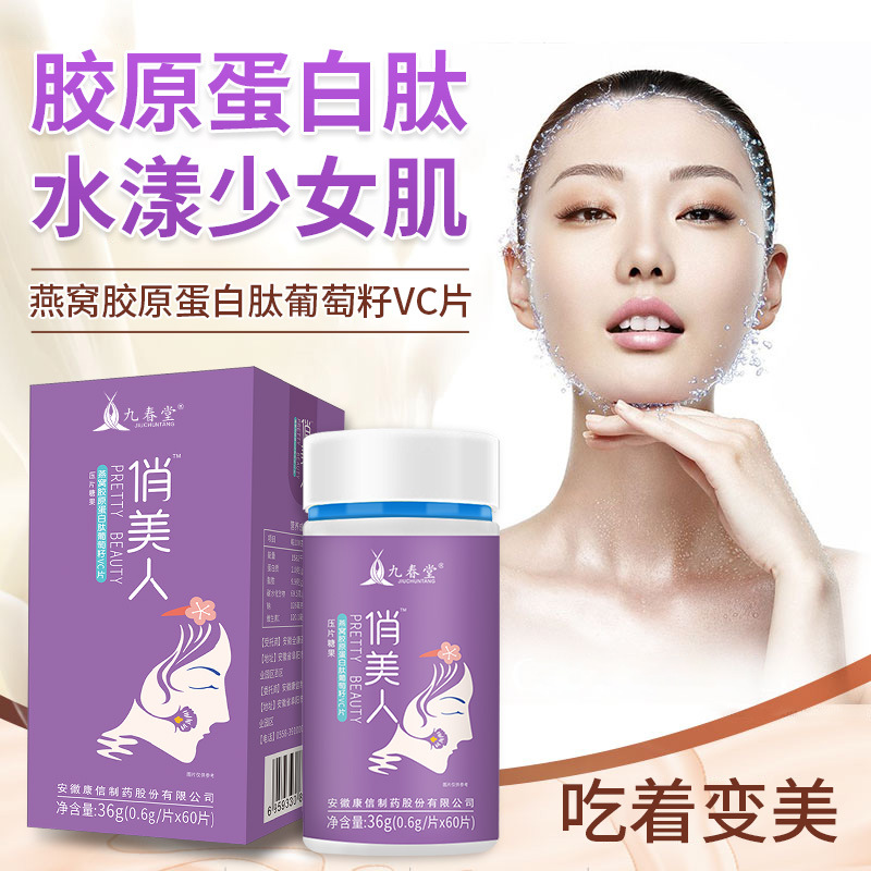 九春堂俏美人燕窩膠原蛋白肽葡萄籽VC片壓片糖果OEM/ODM代加工