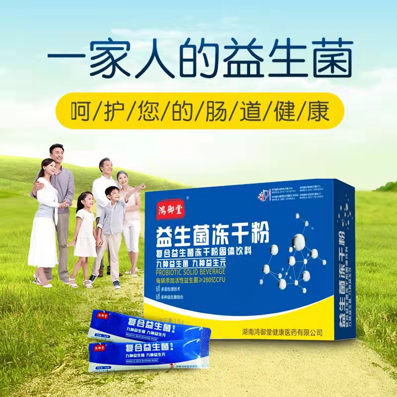 鴻御堂復(fù)合益生菌OEM/ODM成年人孕婦兒童腸胃調(diào)理凍干粉固體飲料6袋貼牌定制