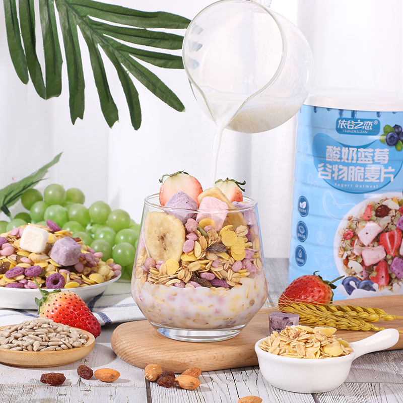酸奶藍莓谷物脆麥片oem/odm 代餐烘焙谷物麥片干吃沖飲谷物早餐代工廠