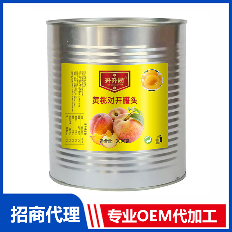 升升園黃桃對開罐頭3000克果蔬罐頭OEM貼牌 罐頭代加工廠家
