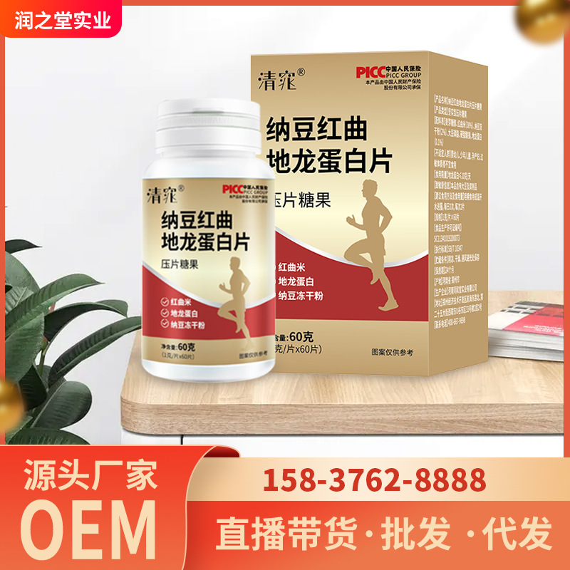 成人中老年納豆紅曲地龍蛋白片一站式貼牌加工 納豆銀杏片納豆紅曲片專業定制