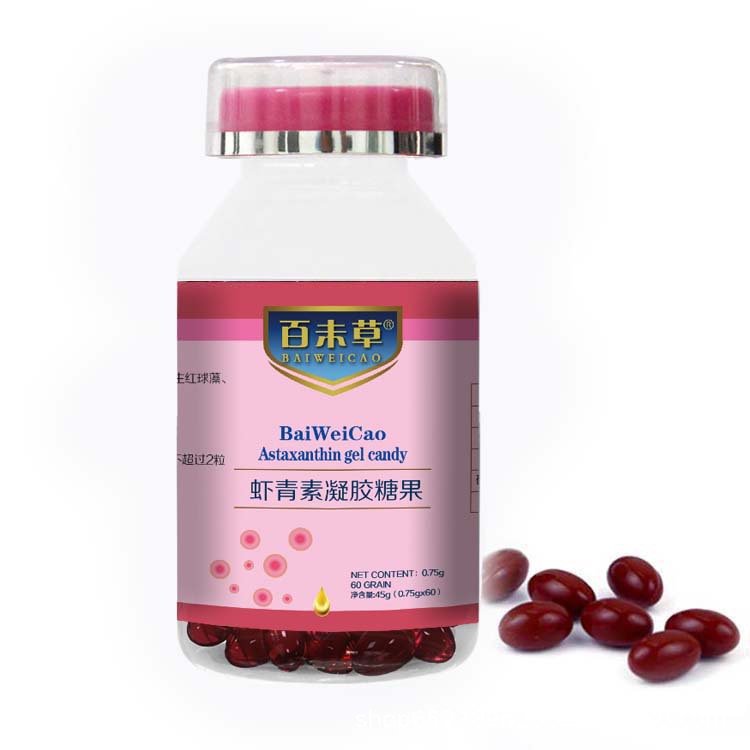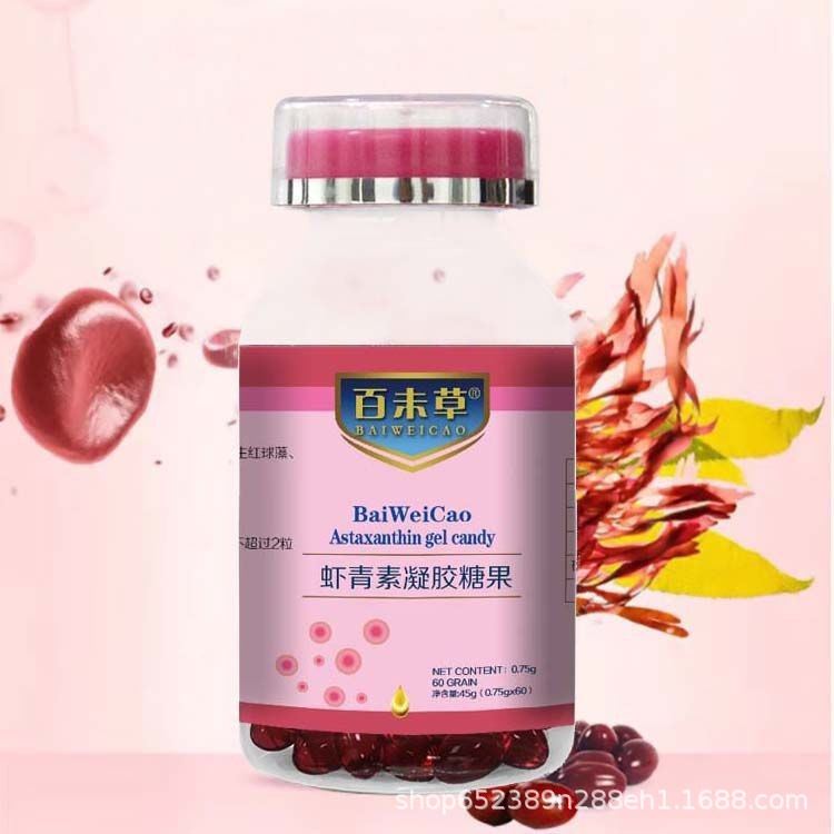 蝦青素凝膠糖果雨生紅球藻源頭工廠 軟膠囊現貨60粒SC食品貼牌定制