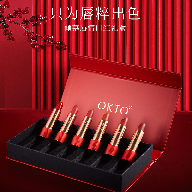 OKTO傾慕唇情口紅禮盒OEM/ODM啞光霧面防水不脫色持久顯白6支彩妝套裝貼牌定制