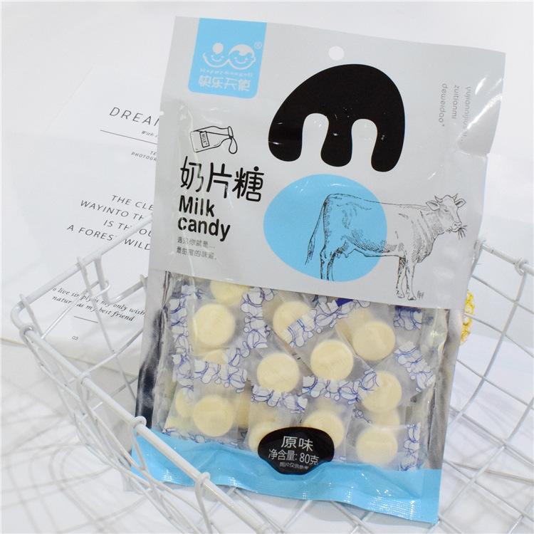 硬糖創意糖果喜糖袋裝休閑兒童零食小吃一站式貼牌代加工 干吃牛奶片糖80g生產基地