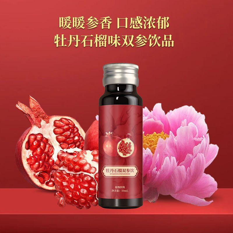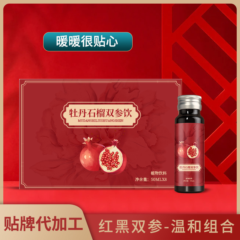 牡丹石榴紅參黑參飲 貼牌定制藥食同源人參發酵口服液 一站式貼牌代加工人參精華口服液一站式貼牌代工