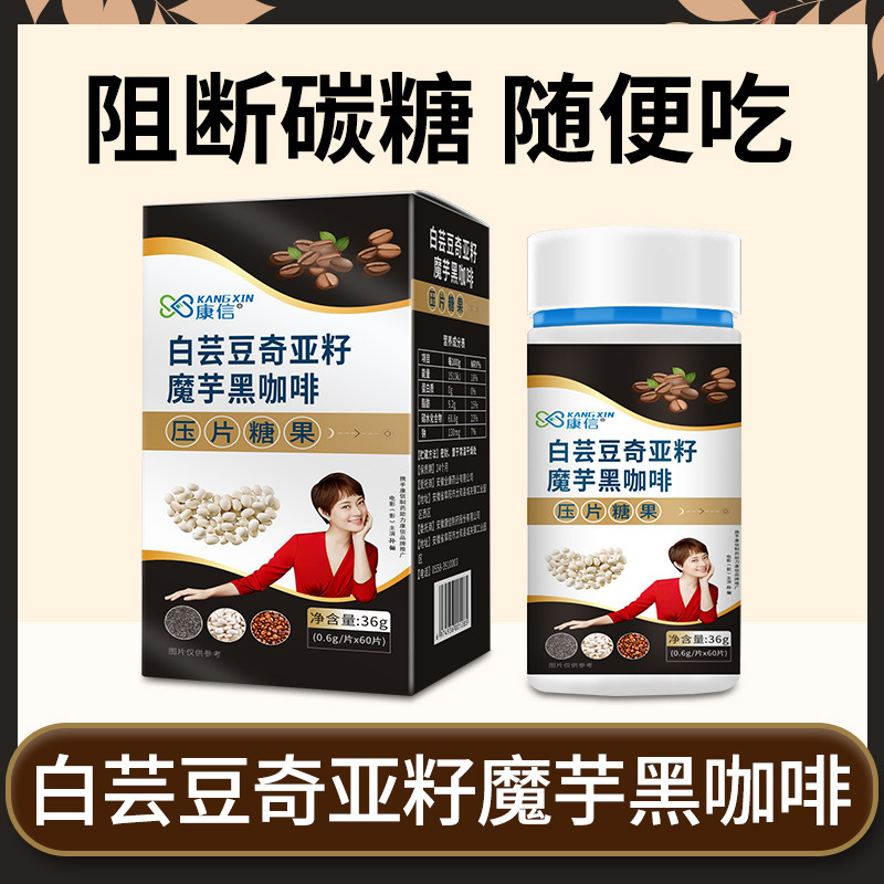 九春堂白蕓豆黑咖啡OEM/ODM魔芋奇亞籽白蕓豆碳水壓片糖果片源頭工廠