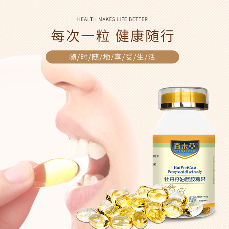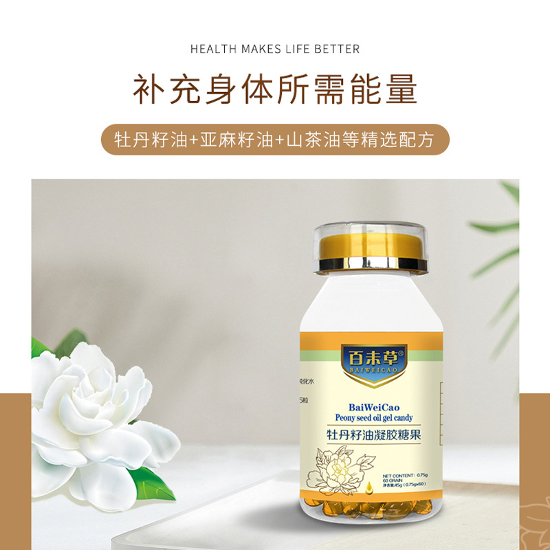 亞麻酸牡丹籽油凝膠糖果oem60粒裝貼牌