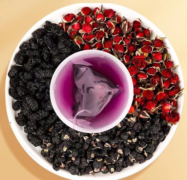 黑枸杞桑葚玫瑰茶oem三角茶包組合茶貼牌