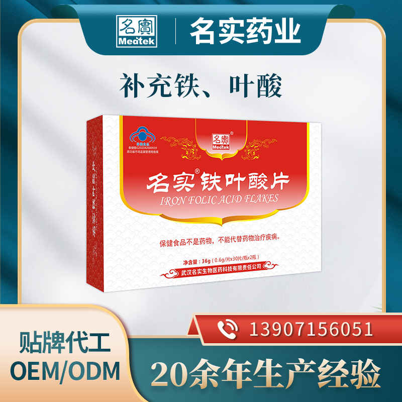 名實(shí)鐵葉酸片 保健食品補(bǔ)鐵葉酸片OEM/ODM貼牌代工