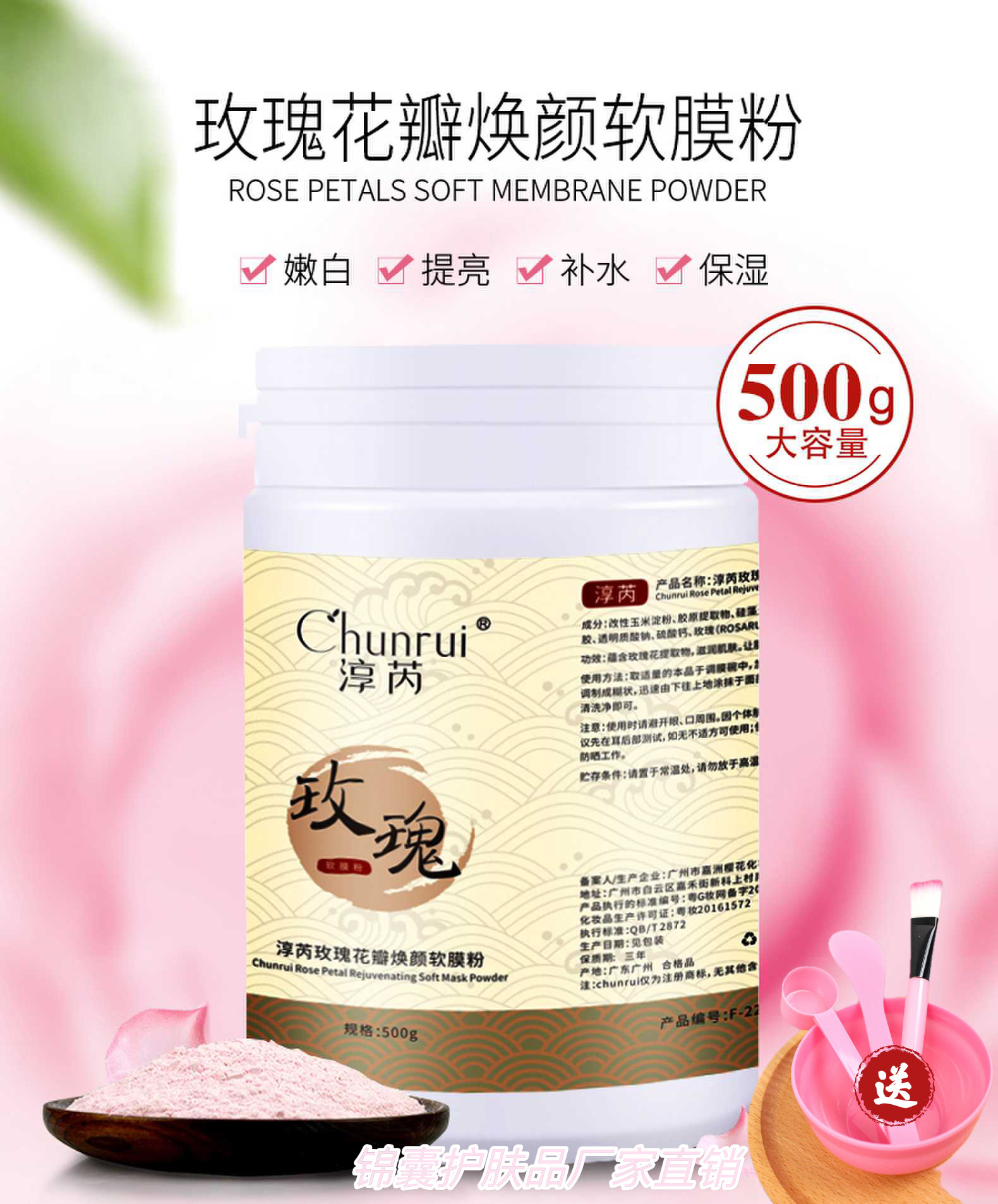 淳芮七子白粉軟膜粉玫瑰面膜粉補水保濕涂抹式自調(diào)泥膜男女士通用OEM代加工