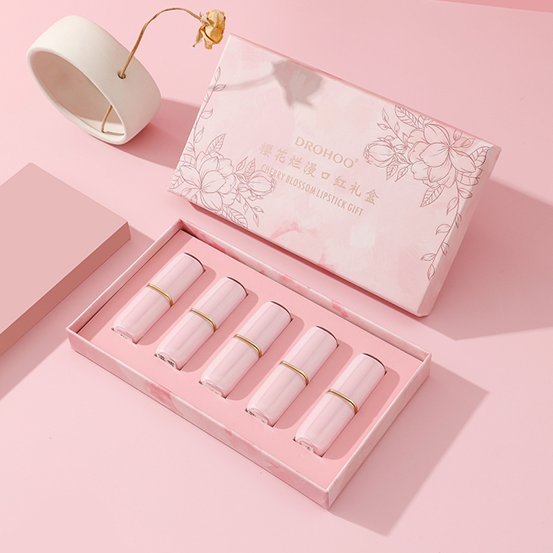 國潮百鳥朝鳳雕花啞光口紅套裝5色裝OEM代加工