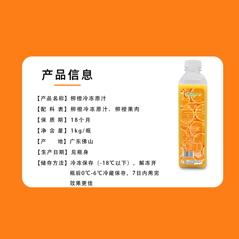 頂川霸氣橙橙汁鮮榨水果茶原料100%柳橙汁非濃縮冷凍果汁奶茶原料貼牌OEM/ODM