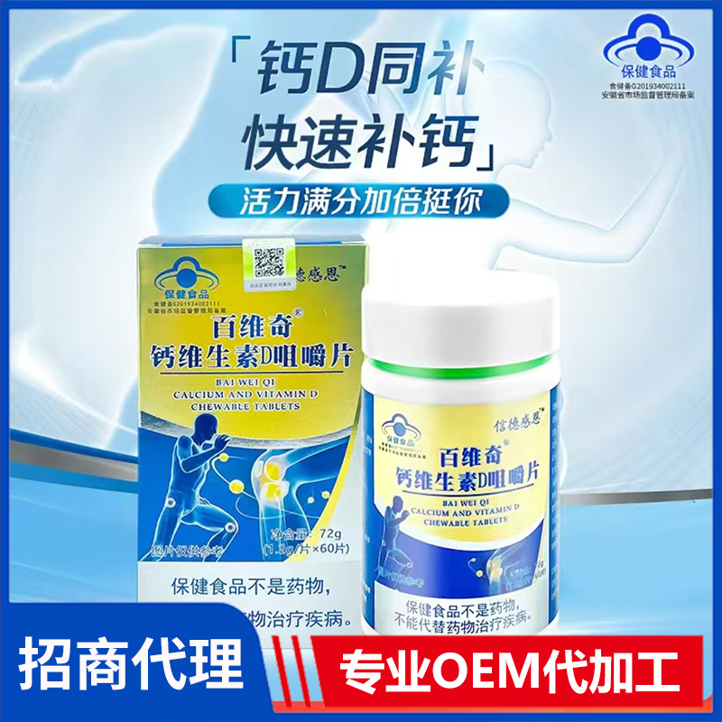 信德感恩百維奇鈣維生素D咀嚼片現(xiàn)貨批發(fā) 藍帽食品咀嚼片OEM貼牌定制代加工