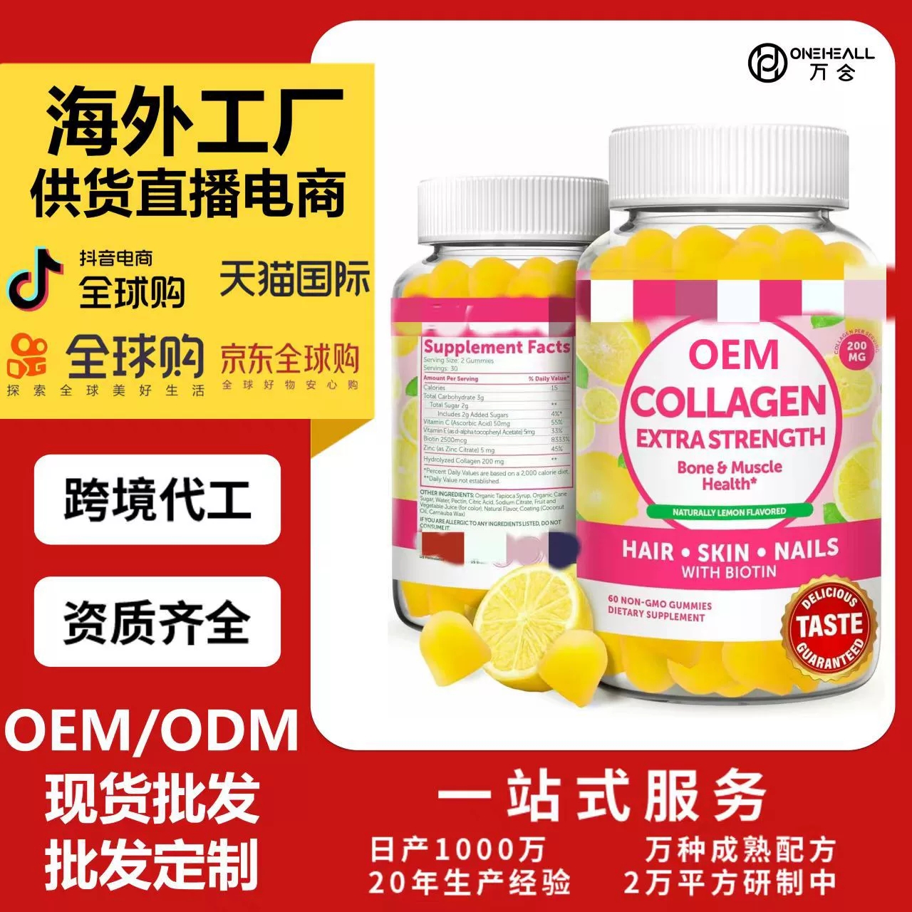 跨境TKAmazon熱銷膠原蛋白肽粉片劑粉劑膠囊飲液軟糖OEM/ODM