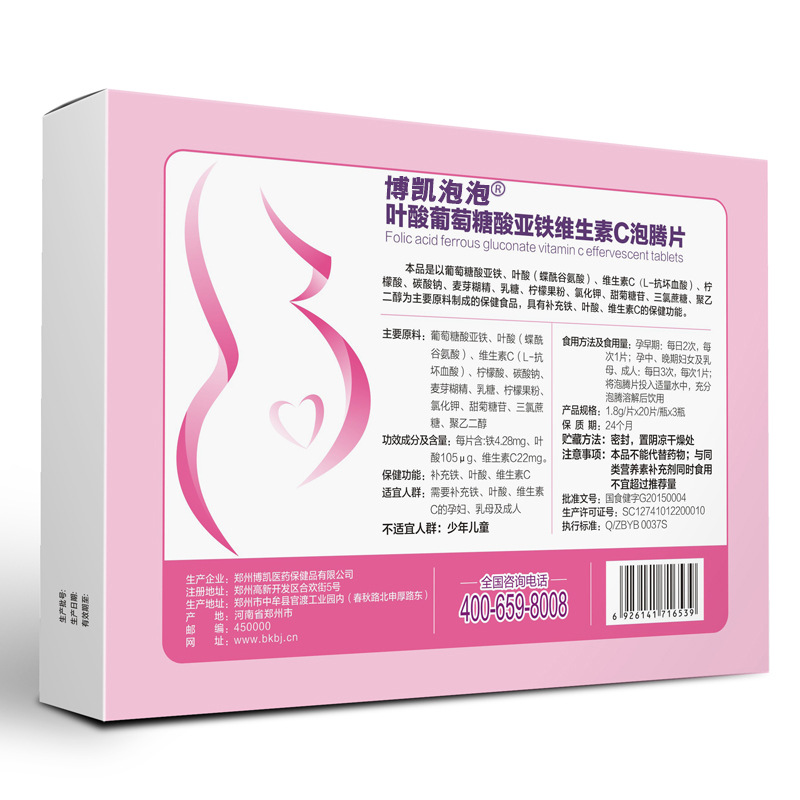 葉酸葡萄糖酸亞鐵維生素C泡騰片貼牌定制代加工