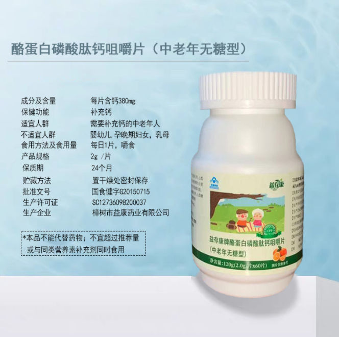 益存康酪蛋白磷酸肽鈣咀嚼片(中老年無糖性)可OEM/ODM代工