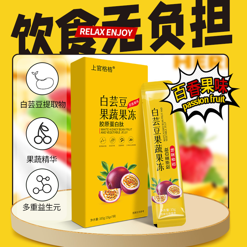 上官格格白蕓豆果蔬果凍貼牌定制 益生元酵素果凍條 果味凝膠聚尚福膠喜堂免費打樣