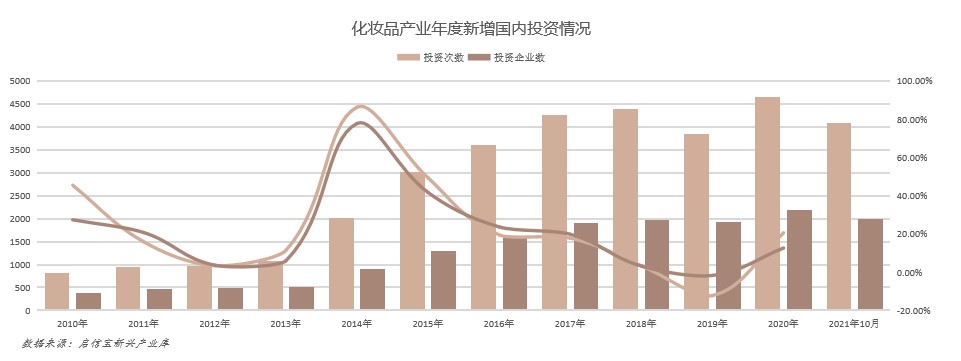 近日,合合信息旗下啟信寶發布《2021全國化妝品產業區域研究報告》(下文簡稱“報告”),通過大數據洞悉中國化妝品產業發展現狀。報告顯示,近10年,我國化妝品企業新增數量逐年增加。2