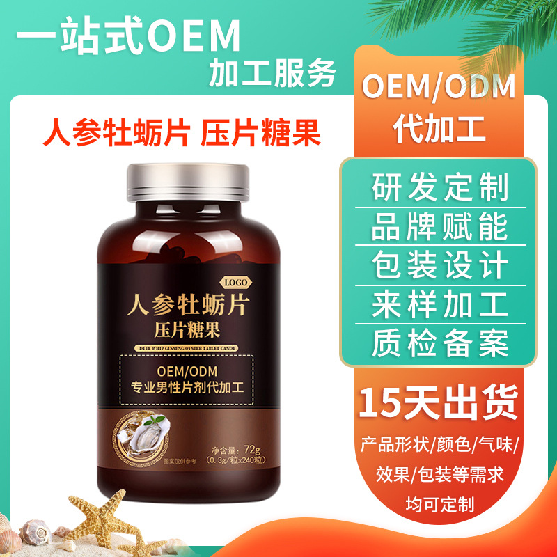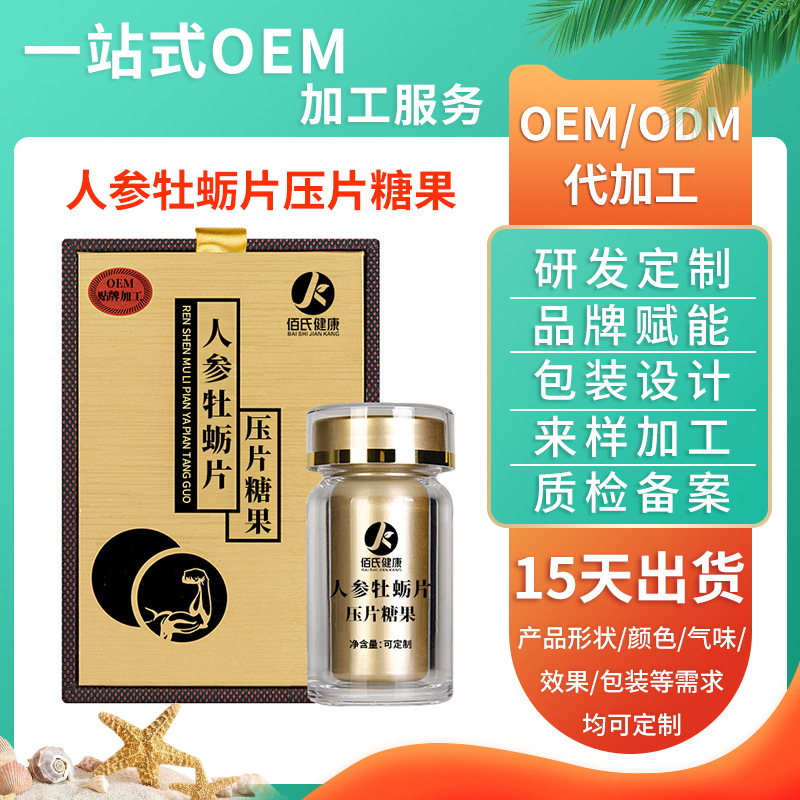 - [2022-12-05]·代加工貼牌人參牡蠣片壓片糖果人參牡蠣片壓片糖果全國統一代加工