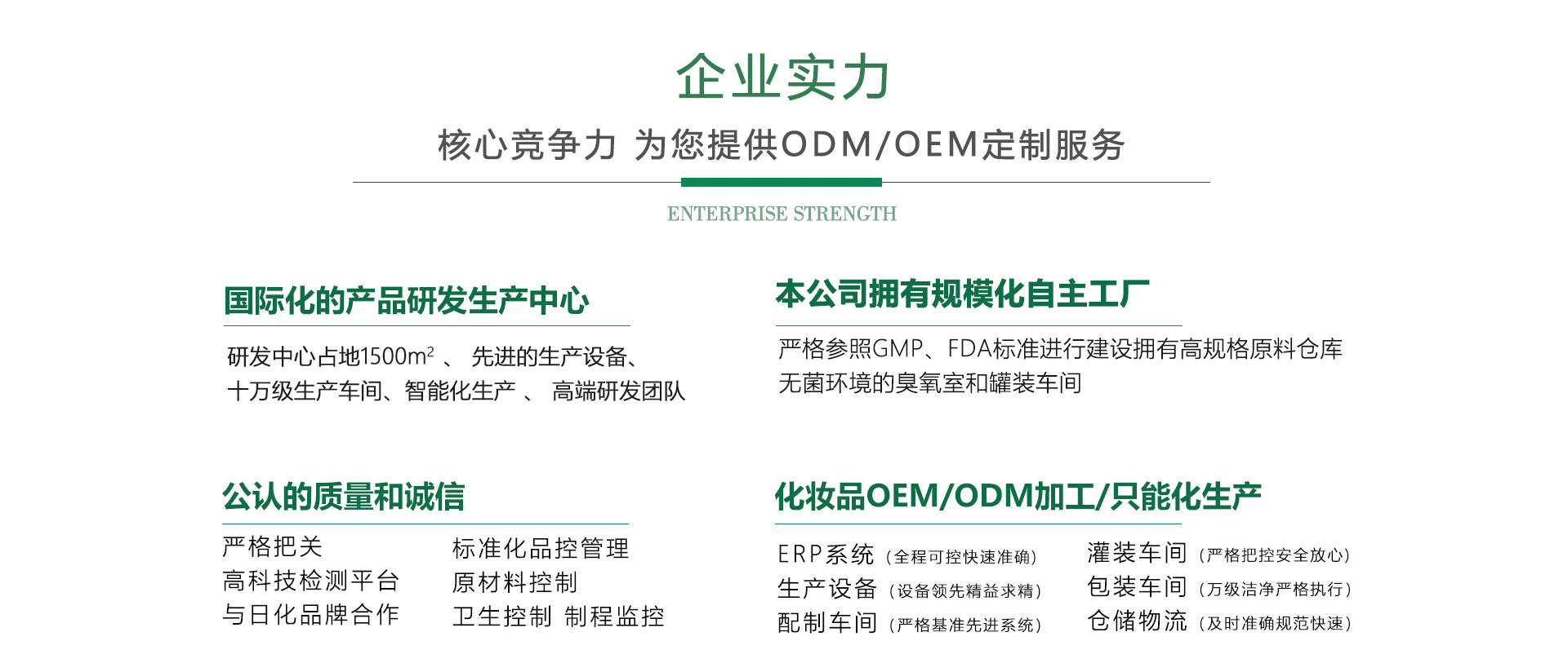 廣州市雅創化妝品有限公司是一家集韓國、日本、德國等國先進技術于一體,年生產能力達數千噸的大型化妝品生產基地,工廠占地面積5000平方米,全套生產線嚴格按GMP標準設計投產,達到微菌化標準,嚴格按照GMP、FDA標準建立的化妝品和生物保健品生產車間,擁有先進的生產技術和現代化的生產設備,是具有國際化水準的化妝品。 采用國際最新生產工藝、先進的生產檢測設備和無菌生產車間、完善的質保體系、精挑細選的產品原料、確保了產品的高質量和安全性。公司設有高規格的研發中心和PMC中心,中、高級專業技術人員占員工總數的30%。公司以專業的研發能力為基礎,憑著先進的國際化標準廠房和生產設備,致力于高品質化妝品的研發和制造,為自有品牌以及加工客戶提供適應市場需要的高品質產品。