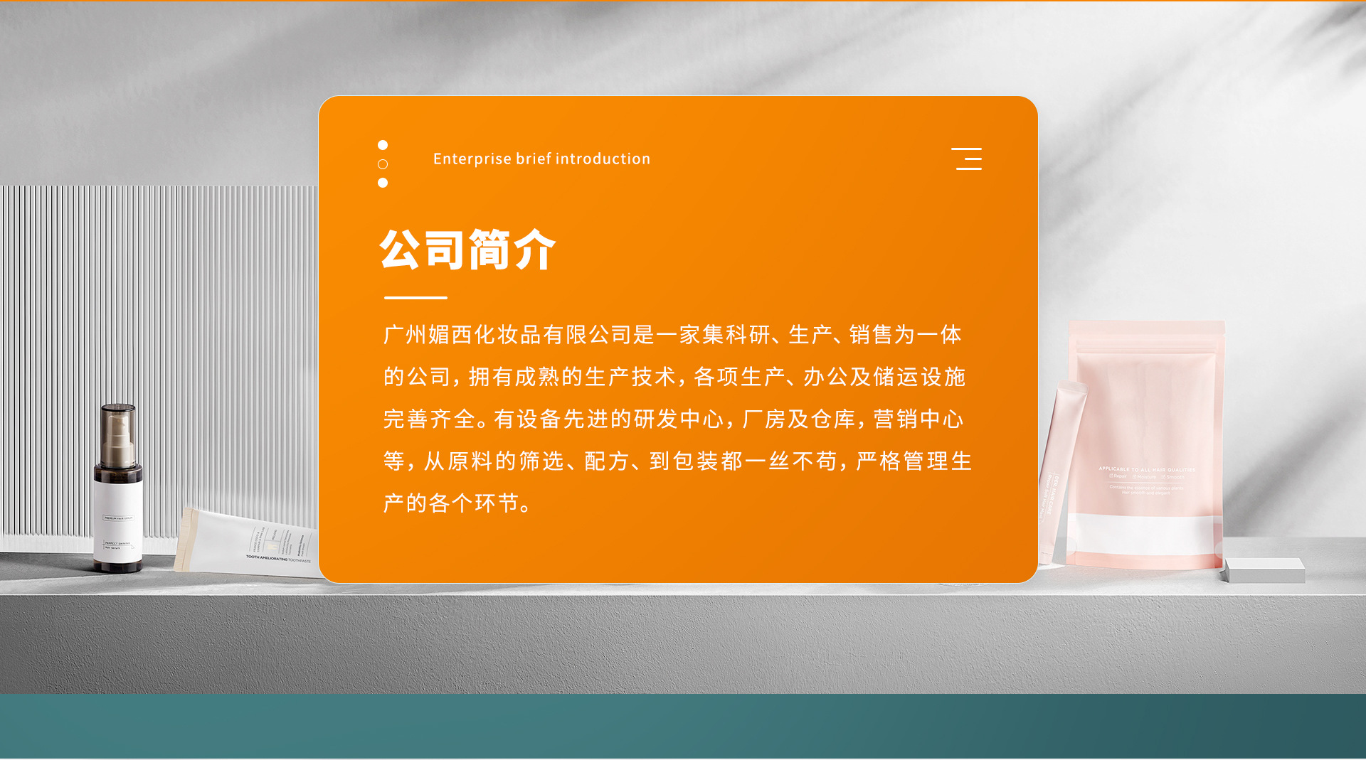 廣州媚西化妝品有限公司是一家集生產加工、經銷批發的有限責任公司,化妝品、精油、護膚品、美白、祛斑、身體護理、瘦身、豐胸是廣州媚西化妝品有限公司的主營產品。廣州媚西化妝品有限公司是一家經國家相關部門批準注冊的企業。廣州媚西化妝品有限公司以雄厚的實力、合理的價格、優良的服務與多家企業建立了長期的合作關系。廣州媚西化妝品有限公司熱誠歡迎各界前來參觀、考察、洽談業務。