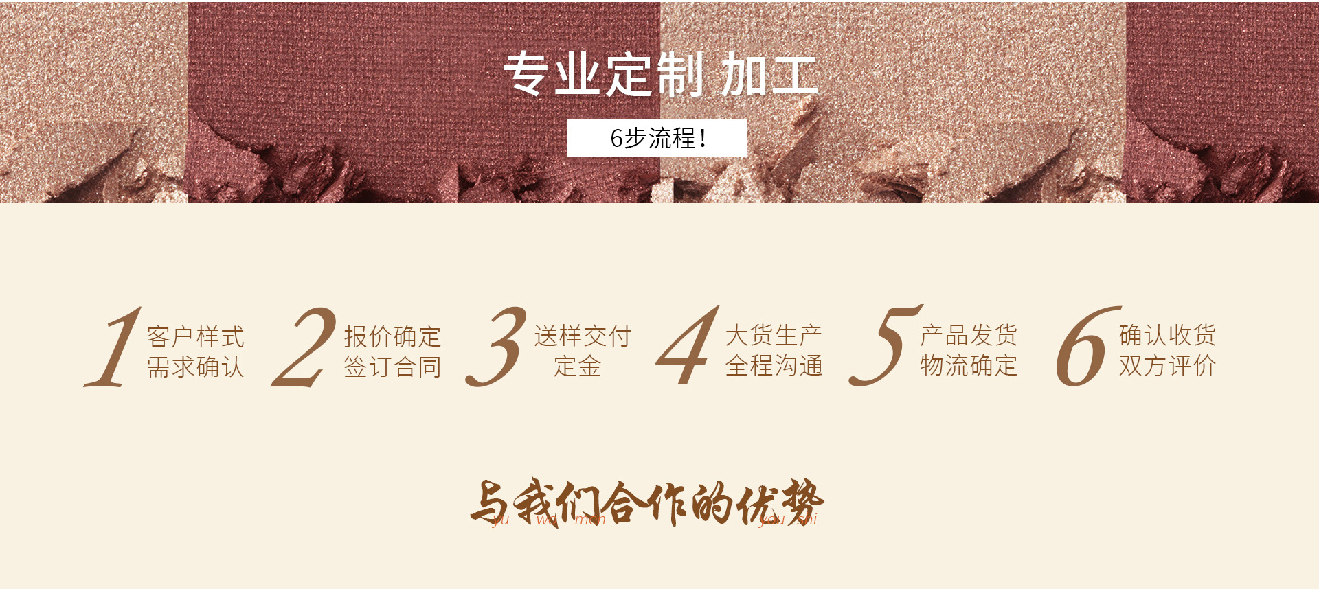 東陽市弘萱化妝品有限公司是一家集產品研發、生產和網絡銷售為一體的彩妝工廠,工廠廠房面積2600平,有6條組粉生產線,4條口紅灌裝線,熟練工人100余人,研發人員2名,公司主營產品有:眼影、遮瑕膏、高光、唇彩、口紅、睫毛膏、眼線液、腮紅、粉底液、化妝刷等。公司產品品種齊全、價格合理,產品暢銷全球市場,在消費者當中享有較高的地位,公司與多家零售商和代理商建立了長期穩定的合作關系。 東陽弘萱化妝品有限公司實力雄厚,重信用、守合同、保證產品質量,以多品種經營和薄利多銷為特色,贏得了廣大客戶的信任。工廠在義烏設立銷售分部,依托義烏高效的物流體系加上工廠直銷,我們誠心與廣大客戶實現合作雙贏,產品自產自銷,價格優美,是廣大客戶的信任之選!