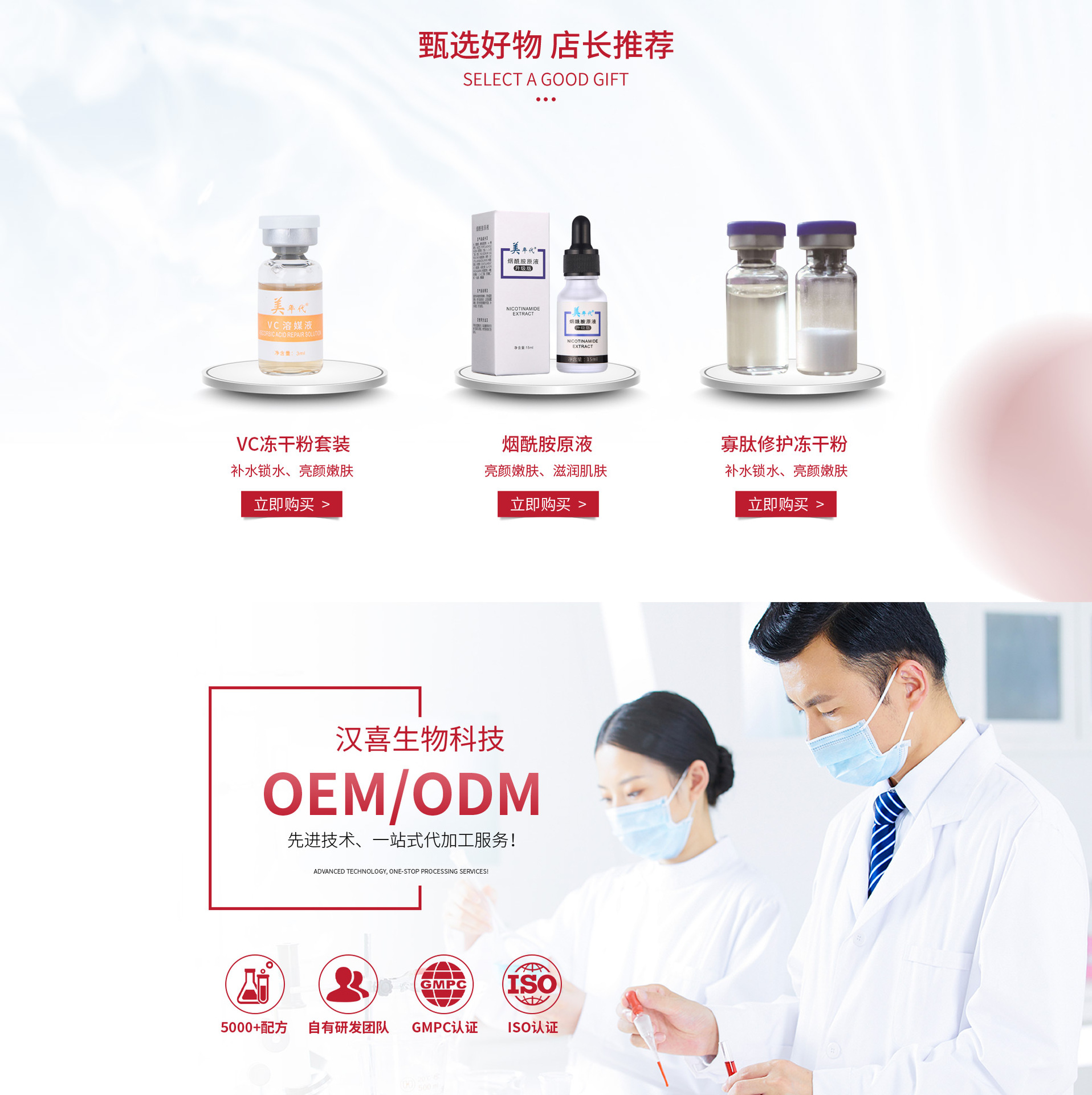 3)完善的質量管理體系和標準實驗室配置。擁有化妝品行業權威認證機構SGS認證的ISO22716、ISO14000、ISO9000與GMPC管理體系。實驗室對原材料、半成品、完成品進行重金屬、微生物全檢。把最安全健康的產品帶給消費者。