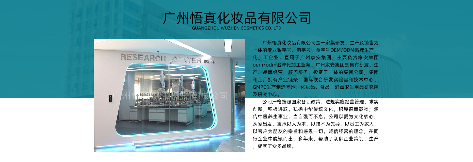 廣州悟真化妝品有限公司是面部護膚產品oem、美容養生產品oem、女性私密產品oem、眼部護理產品oem等產品專業生產加工的公司,擁有完整、科學的質量管理體系。廣州悟真化妝品有限公司的誠信、實力和產品質量獲得業界的認可。歡迎各界朋友蒞臨參觀、指導和業務洽談。