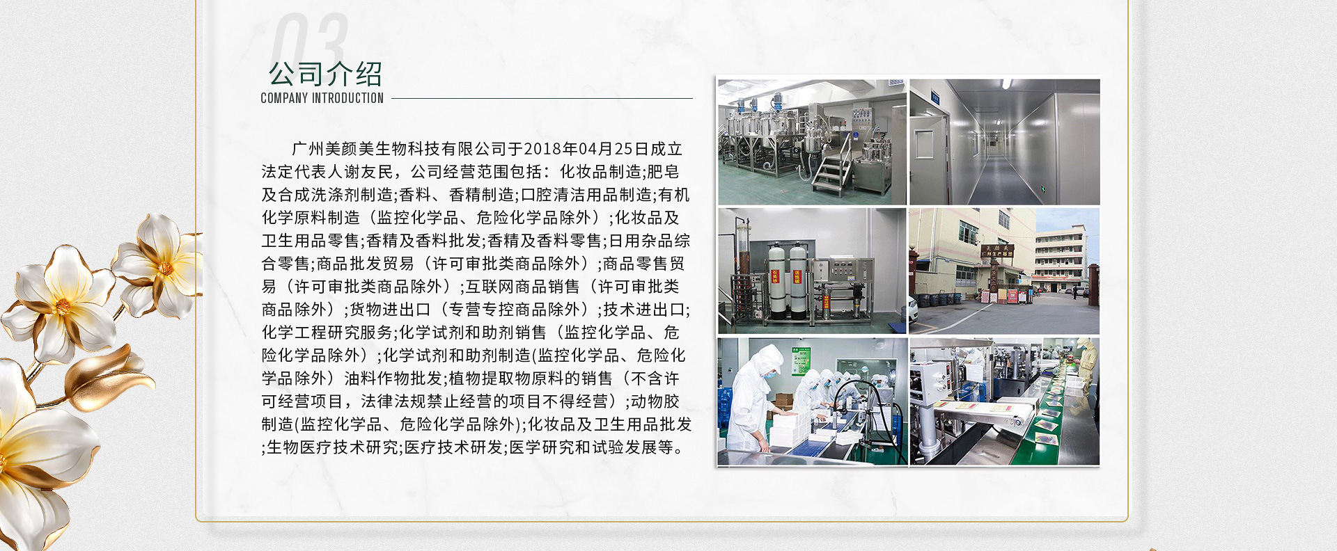 美顏美生物科技有限公司,成立于2012年,是一家專注于化妝品彩妝、護膚加工生產、原料研制、配方開發及配套性服務為一體的妝品OEM/ODM生產及服務企業。 美顏美生物科技有限公司位于廣州市白云區清湖村盛源工業園A棟四樓產房,經營總面積15000平方,美顏美本著“追求卓越,秉承健康,成就美麗”的經營理念,致力于健康美麗事業。公司創立以來, 一直秉承“誠信鑄就未來”的經營核心理念,堅持以質量為生命,優質服務為動力,創新為發展的經營方針,堅持以人為本,科技領先,合作雙贏的戰略理念。經過近十年的不斷發展完善與技術提升,現已成為國內的化妝品護膚及彩妝OEM/ODM首選企業之一,在行業內具有極高的口碑及影響力。