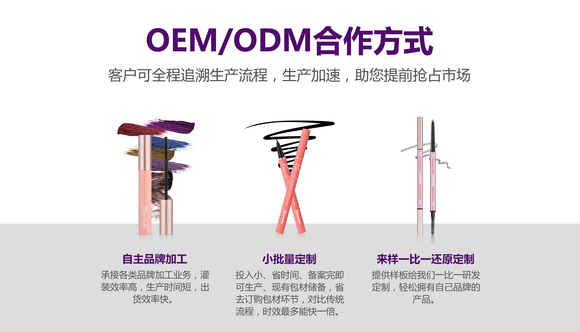 廣州酷彩化妝品有限公司(簡稱“酷彩”),位于廣州市白云區人和鎮,注冊資金1000萬。酷彩主攻睫毛膏等眼部產品研發與生產,專注睫毛膏及眼部彩妝產品17年,因為專注,所以專業!目前旗下有員工100-150人,睫毛膏日常量高達20萬支。公司一貫堅持“品質為本,服務為根,信守合同,合作無憂”的宗旨,多年如一日的服務客戶,客戶覆蓋全國三十余省市,產品進出口東南亞、中東等國家與海外地區,竭誠與國內外商家雙贏合作,一同發展,共創輝煌!