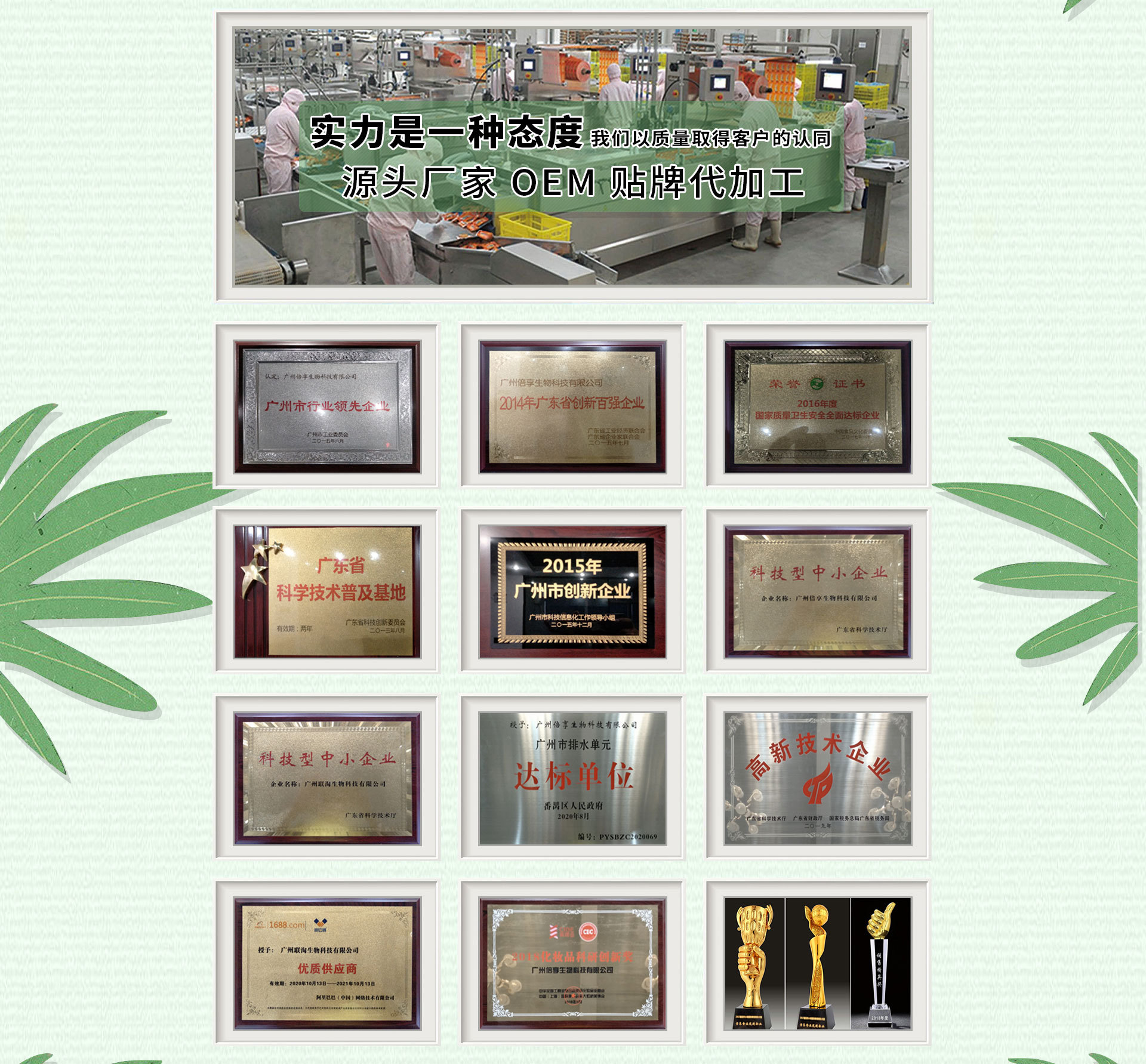 廣州聯(lián)淘生物科技有限公司是廣州倍享生物科技有限公司的子公司,是一家專業(yè)貼牌加工生產(chǎn)營養(yǎng)食品、保健食品等健康食品的專業(yè)廠家。它依托于浙江大學(xué)的技術(shù)力量,具有強(qiáng)大的產(chǎn)品研發(fā)、生產(chǎn)能力。品種包括壓片糖果、泡騰片、咀嚼片、含片、口服片、沖飲、代餐粉、奶昔、軟糖、膠囊,果凍,固體飲料,各類膏滋、液體飲料,代餐餅,營養(yǎng)棒,餅干等系列產(chǎn)品,具有國際領(lǐng)先水平;我司一直秉承:客戶需求,我們得追求!這一原則,憑借科學(xué)的管理和先 進(jìn)技術(shù)能力,正朝著打造國內(nèi)最具有競爭力的健康食品生產(chǎn)商的方向大步邁進(jìn)!先后與國內(nèi)外多家知名企業(yè)達(dá)成友好合作關(guān)系,是全國屈臣氏,萬寧,各大連鎖超市藥店的中國區(qū)域指定供應(yīng)商。公司通過了QS,SC,GMP認(rèn)證,具備完整的產(chǎn)品質(zhì)量控制和保障體系,我們將以一流的產(chǎn)品、一流的服務(wù),期待與國內(nèi)外朋友們進(jìn)行全方位的合作,共同發(fā)展。