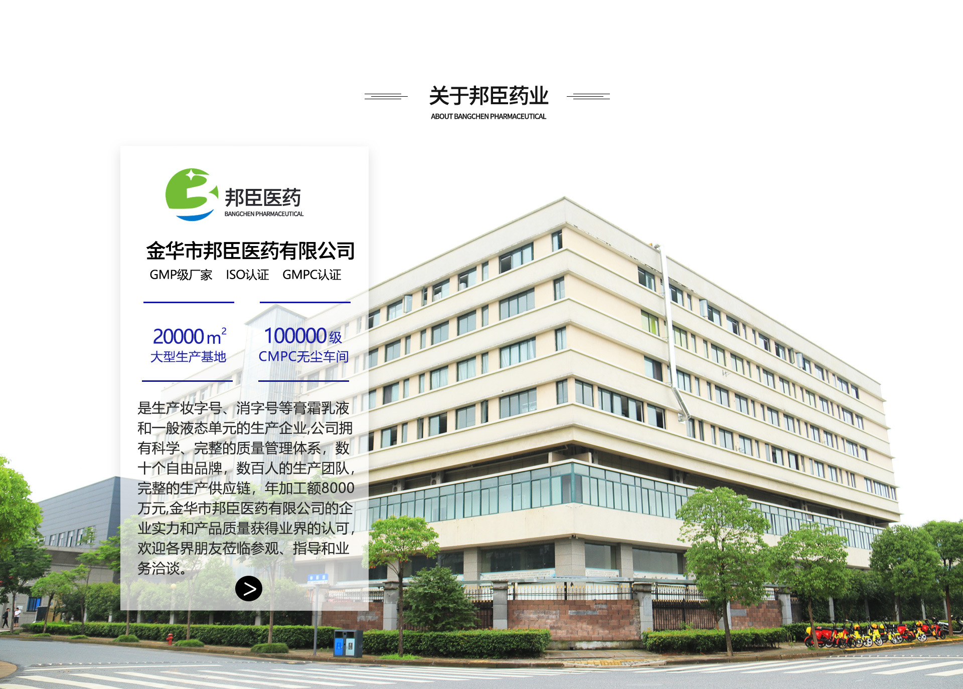 金華市邦臣醫(yī)藥有限公司是妝品膏霜乳液和一般液態(tài)單元,人體潤滑液及各種消毒產(chǎn)品等專業(yè)生產(chǎn)加工的企業(yè),擁有完整、科學的質(zhì)量管理體系。有獨立專業(yè)的實驗室和研發(fā)室。金華市邦臣醫(yī)藥有限公司的誠信、實力和產(chǎn)品質(zhì)量獲得業(yè)界眾多品牌商的認可并獲得一致的好評。歡迎各界朋友蒞臨參觀、指導和業(yè)務洽談。