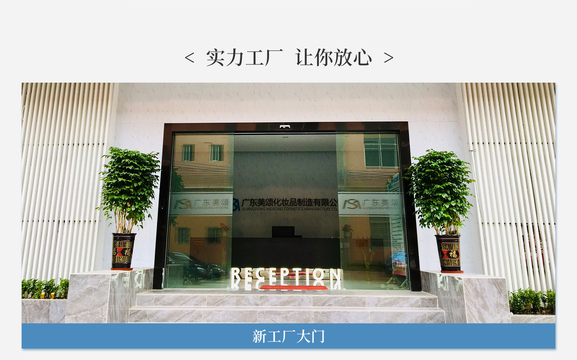 廣州美頌生物科技有限公司一家集研發、生產、銷售于一體的專業化妝品OEM/ODM加工企業,擁有完整、科學的質量管理體系。工廠通過國際SGS認證、GMPC認證、FDA認證,采GMPC10萬級超凈化無菌車間,擁有3000多種成熟配方。公司一直致力于功效型產品和科技儀器護膚研發,全力打造強勢護膚品牌,并為消費者提供安心多效的美膚產品,開發產品涵蓋護膚、美體、美妝以及母嬰產品等多個范疇。美頌工廠合作的知名品牌有芊茗草、REAM、美詩、韋香兒等,是一家化妝品、護膚品OEM/ODM實力廠家。美頌的誠信、實力和產品質量獲得業界的認可。歡迎各界朋友蒞臨參觀、指導和業務洽談。 美頌工廠通過瑞士SGS、GMPC、FDA多項認證,歡迎前來驗廠。同時提供化妝品、彩妝OEM/ODM,歡迎大家咨詢訂購