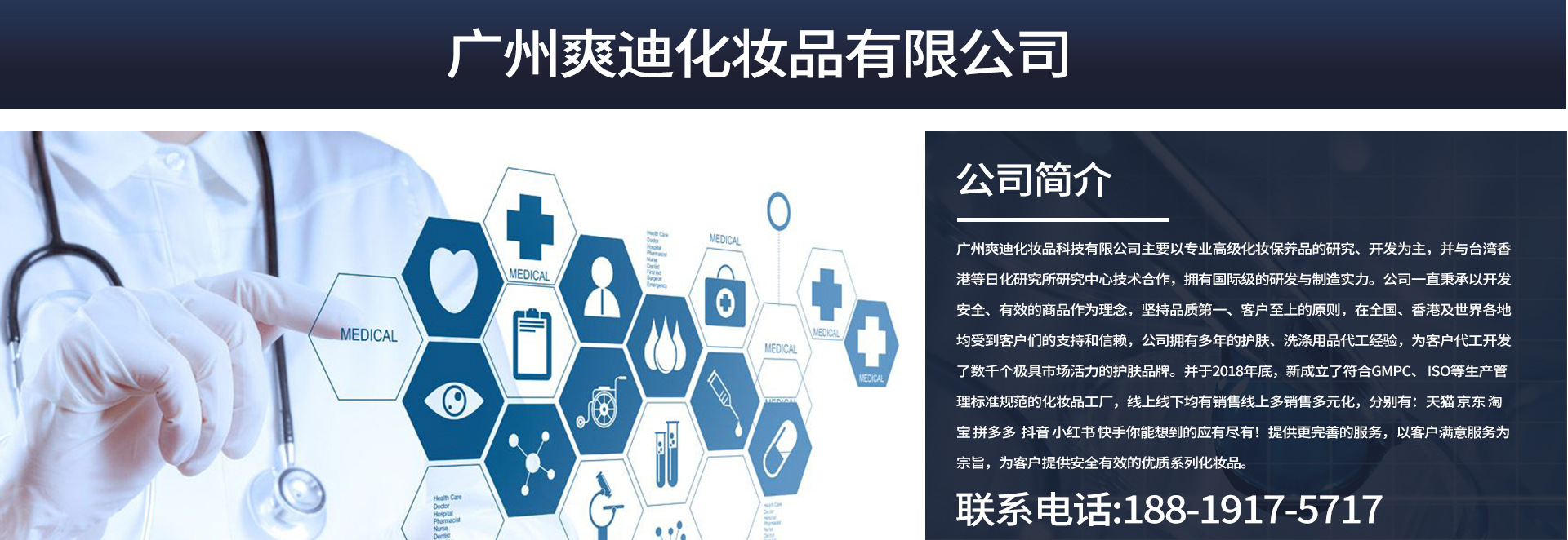 廣州爽迪化妝品有限公司是面部護膚、代加工等產品專業生產加工的公司,擁有完整、科學的質量管理體系。廣州爽迪化妝品有限公司的誠信、實力和產品質量獲得業界的認可。歡迎各界朋友蒞臨參觀、指導和業務洽談。