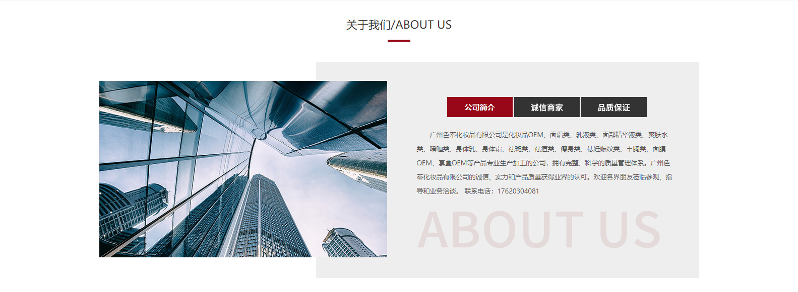 廣州色蒂化妝品有限公司是化妝品OEM、面霜類、乳液類、面部精華液類、爽膚水類、啫喱類、身體乳、身體霜、祛斑類、祛痘類、瘦身類、祛妊娠紋類、豐胸類、面膜OEM、套盒OEM等產品專業生產加工的公司,擁有完整、科學的質量管理體系。廣州色蒂化妝品有限公司的誠信、實力和產品質量獲得業界的認可。歡迎各界朋友蒞臨參觀、指導和業務洽談