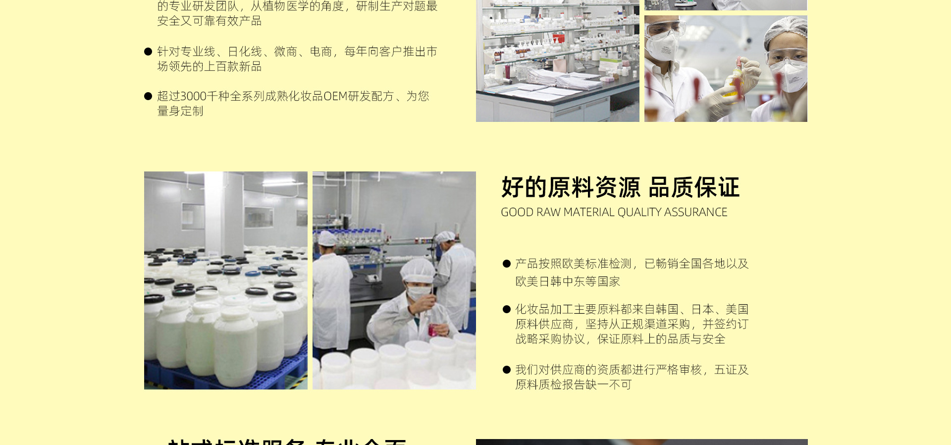 廣州市源澤藥業(yè)有限公司是宜家集化化妝品研究、開發(fā)、生產(chǎn)及銷售與一體的中高端化妝品研發(fā)生產(chǎn)高新技術(shù)企業(yè)、公司以信譽(yù)第一、品質(zhì)第一位追求,隨時(shí)掌握國際化妝品的新動(dòng)向,并以通力合作,長期發(fā)展為宗旨,針對的需求,從事化化妝品OEM/odm開發(fā)、設(shè)計(jì)、生產(chǎn)的一站式服務(wù)。公司投資建成占地約23000平方米,建筑面積超過15000平方米,是一家完全達(dá)到國際化妝品生產(chǎn)企業(yè)標(biāo)準(zhǔn)的現(xiàn)代化工廠,生產(chǎn)基地?fù)碛协h(huán)保舒適的現(xiàn)代化gmp生產(chǎn)車間,兩條具有國內(nèi)領(lǐng)先水平的自動(dòng)化凍干線,八條全自動(dòng)面膜灌裝生產(chǎn)線六條單支產(chǎn)品灌裝流水線 和三維自動(dòng)包裝機(jī)(煙包機(jī))等一系列現(xiàn)代化生產(chǎn)設(shè)備,全方位確保 美品的高效產(chǎn)能,實(shí)驗(yàn)室原料存放間,乳化間,灌裝車間內(nèi)包材存放車間和更衣室均達(dá)到10萬級(jí)空氣凈化標(biāo)準(zhǔn),其他區(qū)域采用30萬級(jí)空氣凈化標(biāo)準(zhǔn),能有效把空氣中≥0.5pm塵粒數(shù)/立方米控制在≤3 500 000,≥5pu塵粒數(shù)/立方米