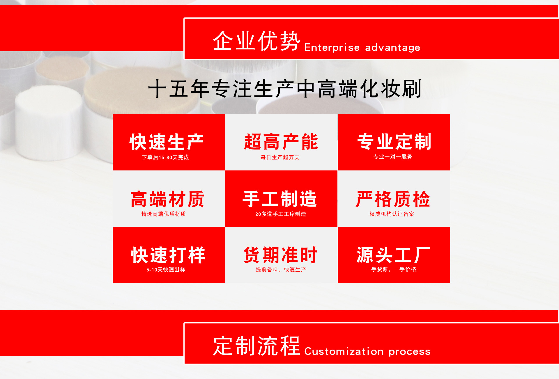滄州莫玉科技有限公司是化妝工具、化妝刷等產品專業生產加工銷售的公司對外承接化妝刷代加工,自營本品牌批發,擁有完整、科學的質量管理體系。滄州莫玉科技有限公司的誠信、實力和產品質量獲得業界的認可。歡迎各界朋友蒞臨參觀、指導和業務洽談