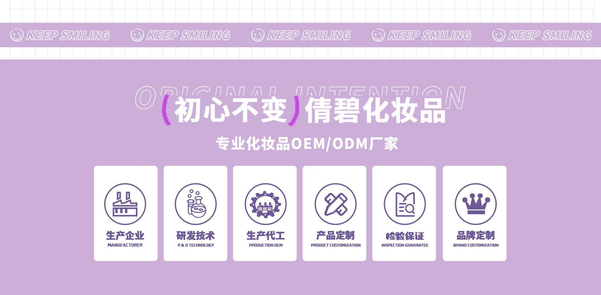 廣州市倩碧化妝品有限公司隸屬尚莊集團,是集研發(fā)、設(shè)計、生產(chǎn)銷售于一體,專業(yè)化妝品OEM/ODM加工企業(yè),幫助客戶在日化線、專業(yè)線 打造一個高品質(zhì)、豐富品系的品牌,公司基地位于花都區(qū)新雅街東輝路2號,占地面積30000平方米,工廠嚴格按照GMP生 產(chǎn)標準建設(shè),參照美聯(lián)邦標準FS209E以及日本JIS(9920-1989)標準進行設(shè)計建造,公司以彩妝各品類化妝品(彩妝全品類、 底妝品類、卸妝品類、護膚品類)為主,產(chǎn)品行銷全國各地,遠銷日本,韓國,歐洲等國,在全國各地已經(jīng)建立了非常完 善的銷售網(wǎng)絡(luò)渠道,擁有全國各地省,市級代理商,公司憑借優(yōu)質(zhì)的產(chǎn)品和優(yōu)質(zhì)的服務(wù)贏得了良好的市場聲譽,在行業(yè)內(nèi) 建立了一定的知名度!是集產(chǎn)品研發(fā),生產(chǎn),包裝配套,品牌推廣,市場營銷于一體的完整供應(yīng)鏈公司