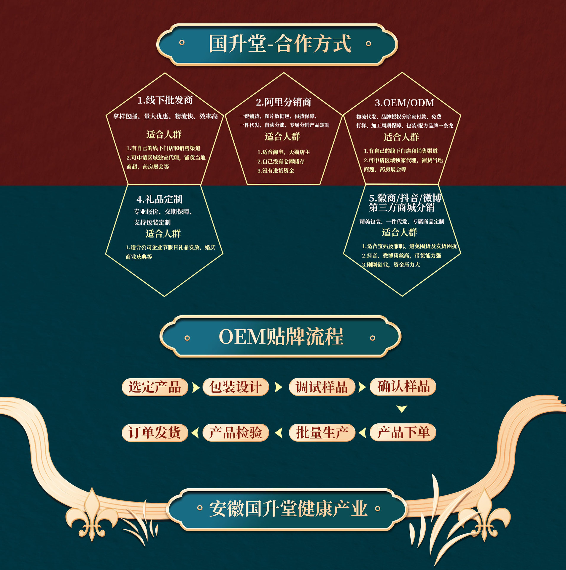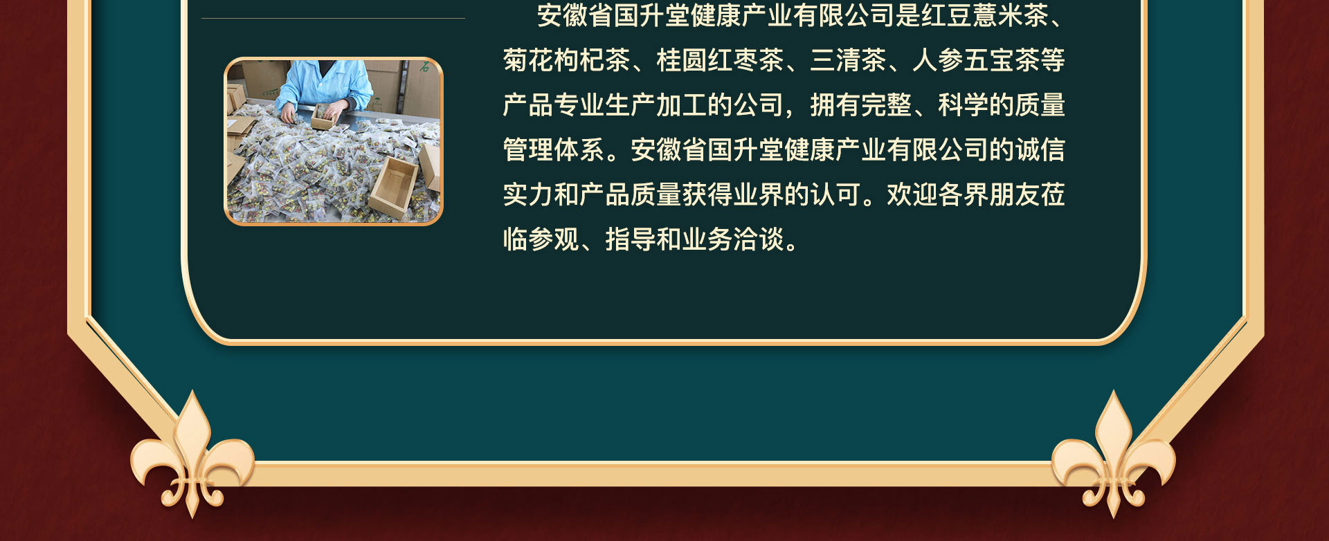 安徽省國升堂健康產業有限公司專注:OEM貼牌代加工生產,花茶,代用茶,調味茶,SC認證企業,支持OEM,ODM合作。 安徽省國升堂健康產業有限公司是一家集科研、生產、銷售為一體的現代化食品加工公司。在省市政府的大力支持下,公司按照SC標準建立了現代化養生食品生產車間,推出了收消費者青睞的產品,擁有采購、生產、加工、銷售以及電商銷售一體化服務。 需要的客戶可以聯系在線旺旺,或者聯系以下銷售經理。