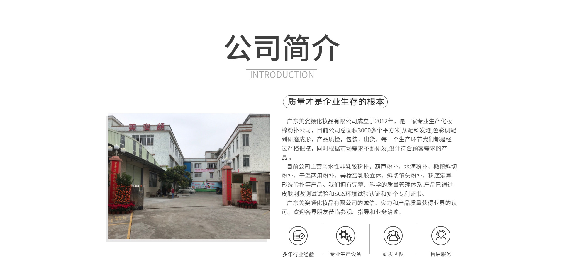 江門市美姿顏化妝品有限公司是葫蘆粉撲、水滴粉撲、橄欖粉撲、筆頭粉撲、異形粉撲、氣墊粉撲、化妝棉、美妝工具、天然乳膠粉撲等產品專業生產加工的公司,擁有完整、科學的質量管理體系。江門市美姿顏化妝品有限公司的誠信、實力和產品質量獲得業界的認可。歡迎各界朋友蒞臨參觀、指導和業務洽談。