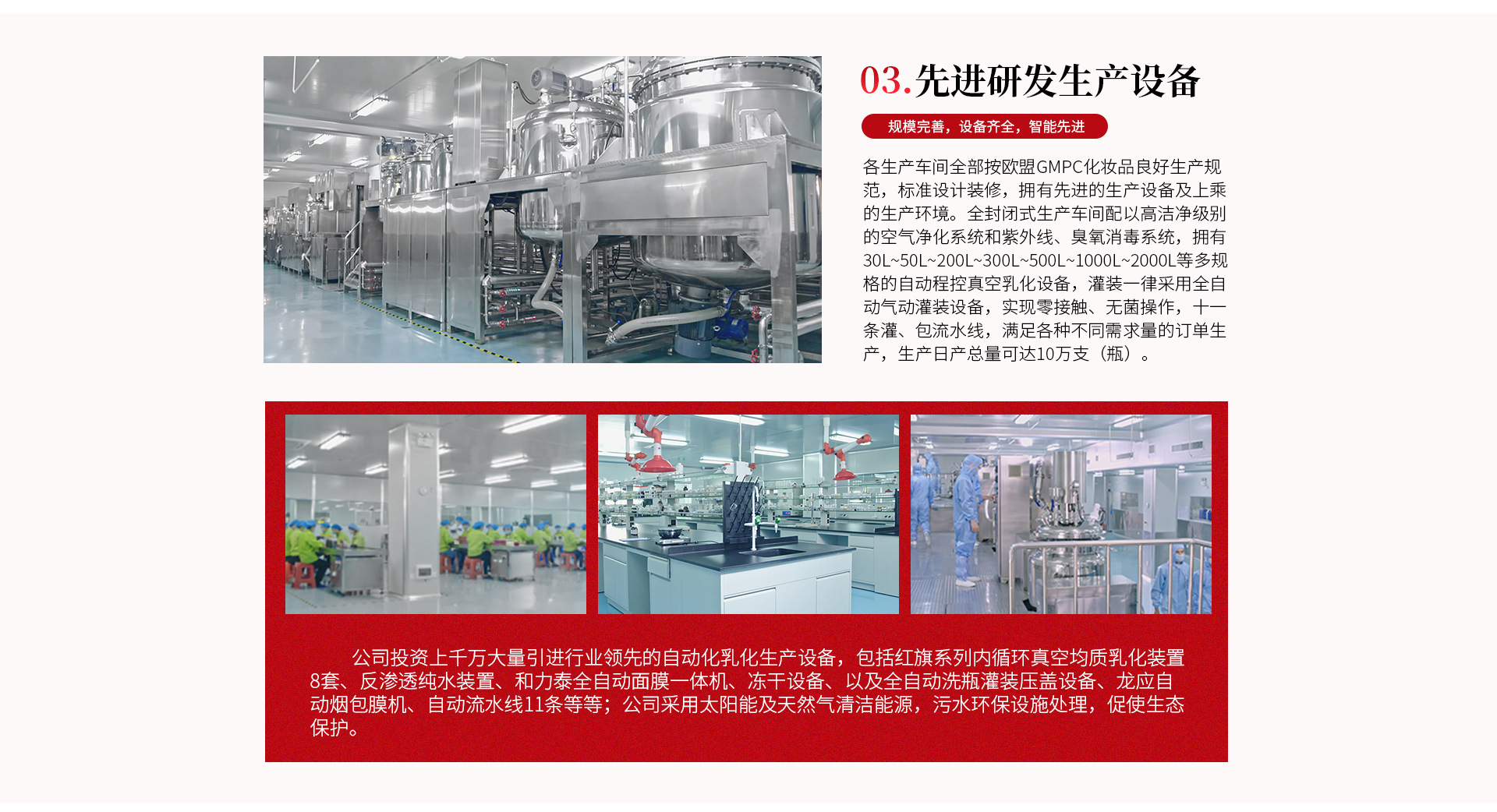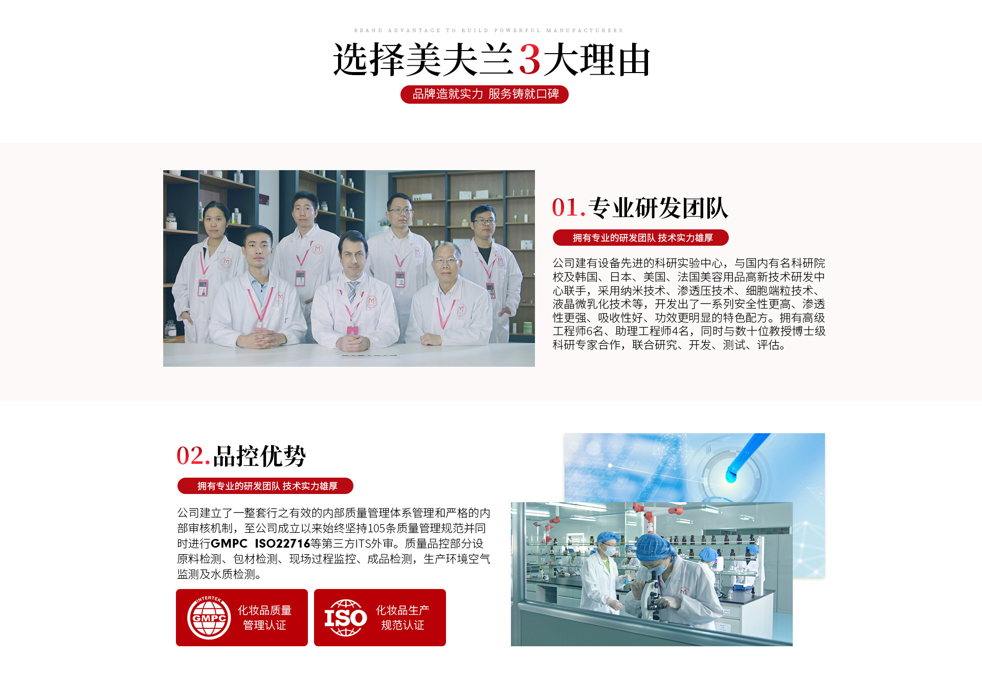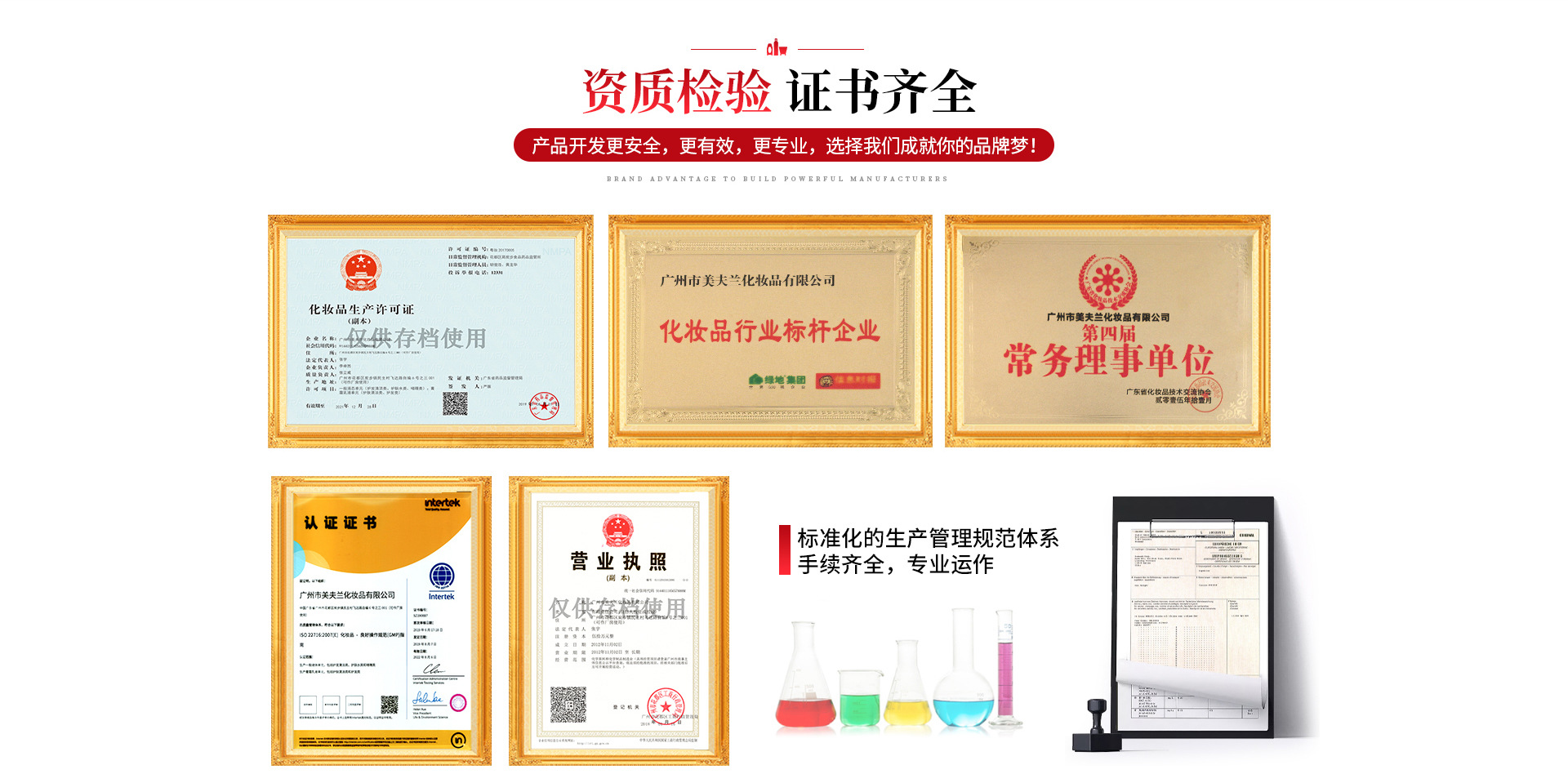 廣州市美夫蘭化妝品有限公司成立于2012年,公司是一家集化妝品研制開發(fā)、生產(chǎn)制造、市場銷售、技術(shù)服務(wù)、OEM/ODM品牌加工五位一體的現(xiàn)代化化妝品加工企業(yè) 美夫蘭擁有13000㎡的現(xiàn)代化標(biāo)準(zhǔn)生產(chǎn)廠房,嚴(yán)格遵照歐盟化妝品生產(chǎn)規(guī)范打造的GMP10萬級無菌生產(chǎn)車間 擁有國內(nèi)領(lǐng)先科研開發(fā)團(tuán)隊(duì),與江南大學(xué)藥學(xué)院、安徽大學(xué)生命科學(xué)學(xué)院特色生物資源研究中心、南京工業(yè)大學(xué)、廣州中醫(yī)藥大學(xué)等專業(yè)研究機(jī)構(gòu)緊密合作,用技術(shù)、實(shí)力、創(chuàng)新驅(qū)動化妝品研發(fā)生產(chǎn)