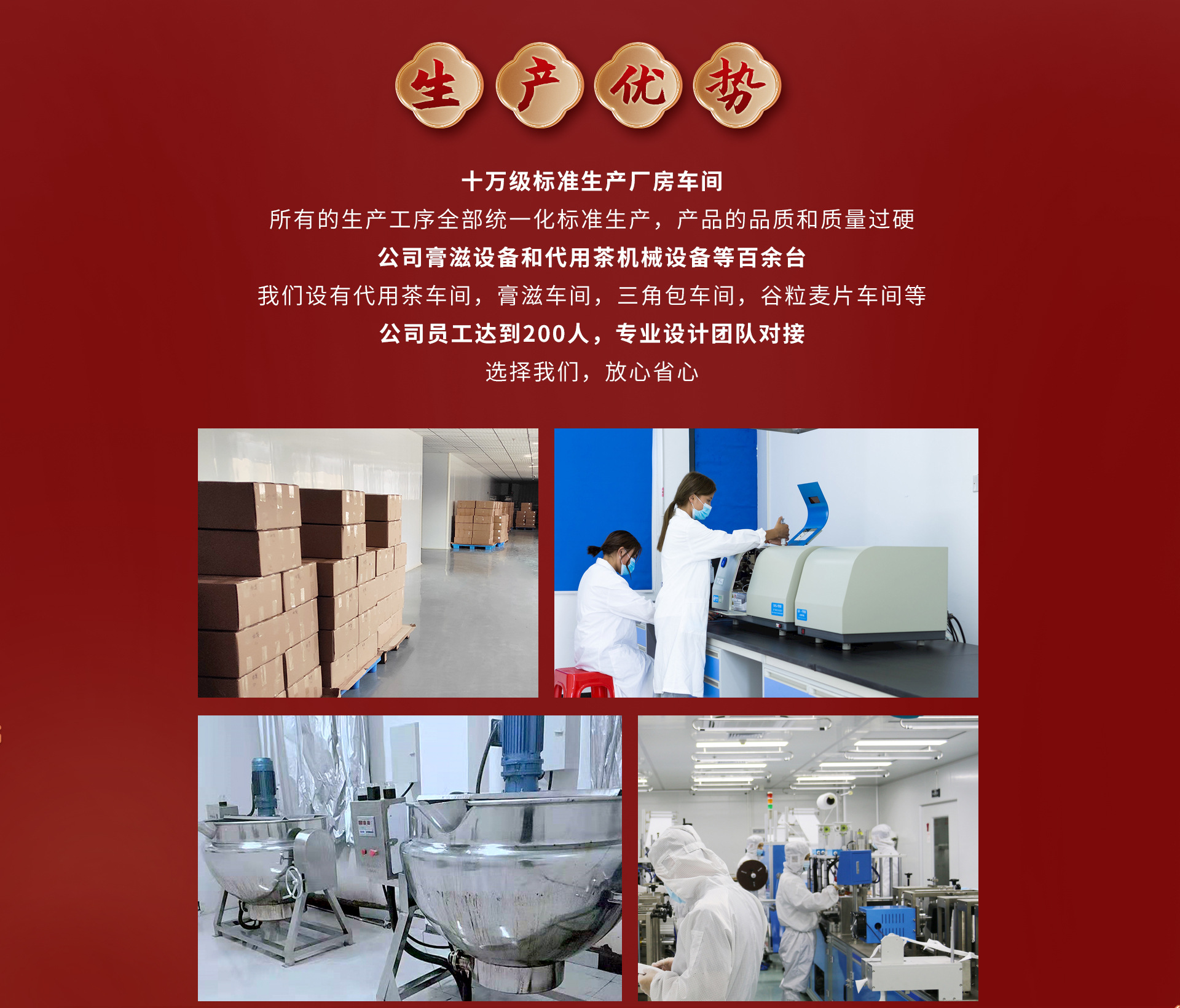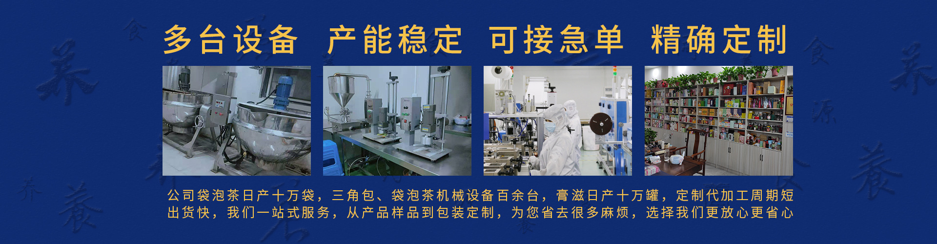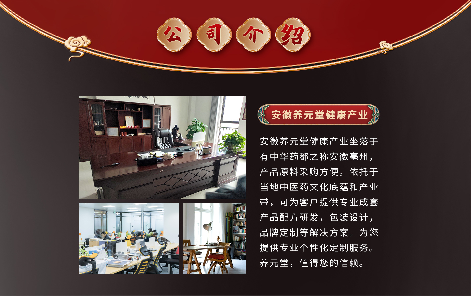 安徽養元堂健康產業公司是花草茶、膏滋方便食品等專業生產加工的公司,擁有完整、科學的質量管理體系。本著誠信、實力和產品質量獲得業界的認可。歡迎各界朋友蒞臨參觀、指導和業務洽談。