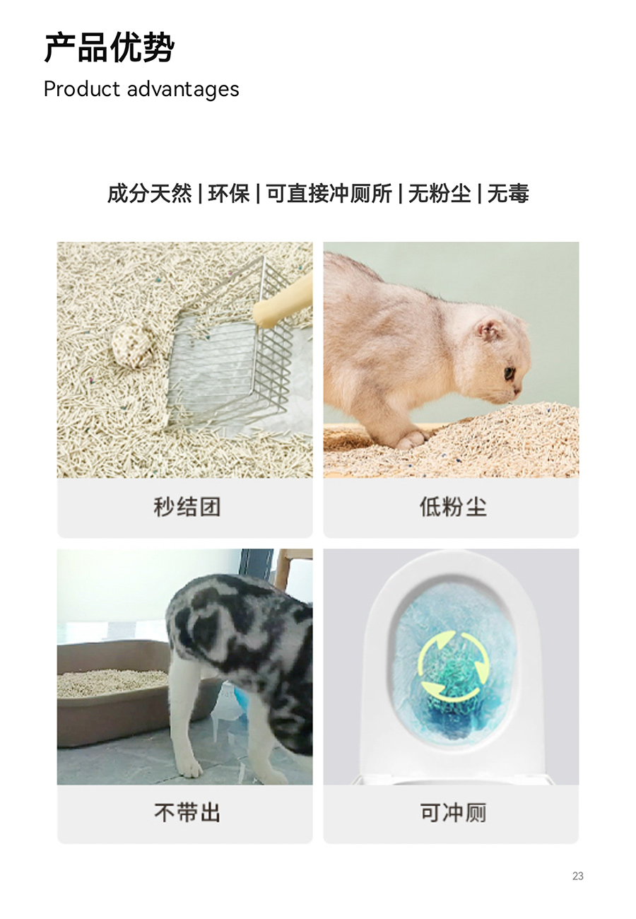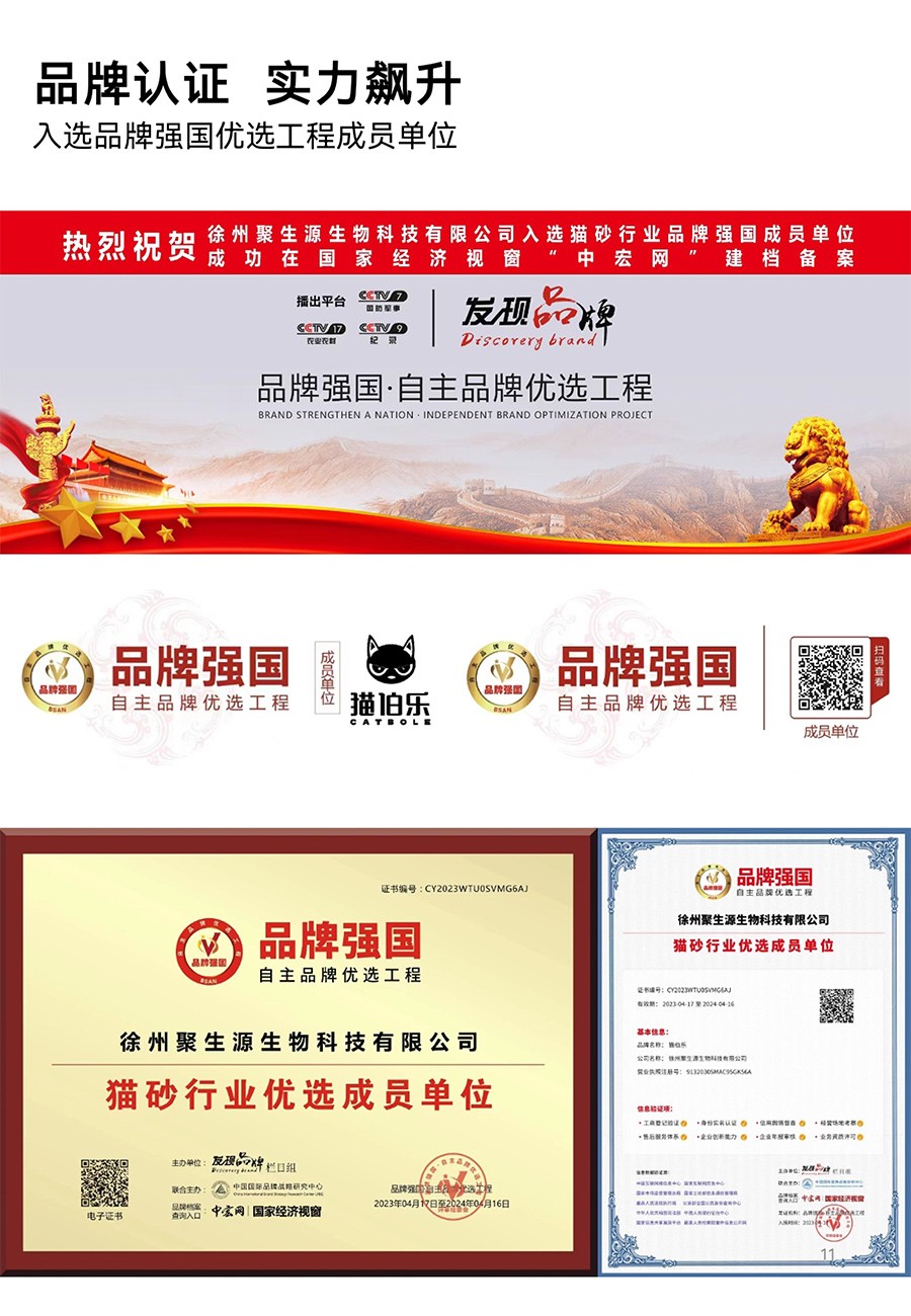 徐州聚生源生物科技有限公司成立于2023年3月3日,注冊資本300萬元,公司基地座落于江蘇省徐州市賈汪區青山泉鎮,是一家專業從事寵物貓砂的研發、生產以及銷售的科技環保企業。以大豆纖維、玉米淀粉等植物原料為基礎,利用天然植物纖維的吸水結團性和包裹性制作的純植物貓砂,打造國內高端豆腐貓砂品牌。