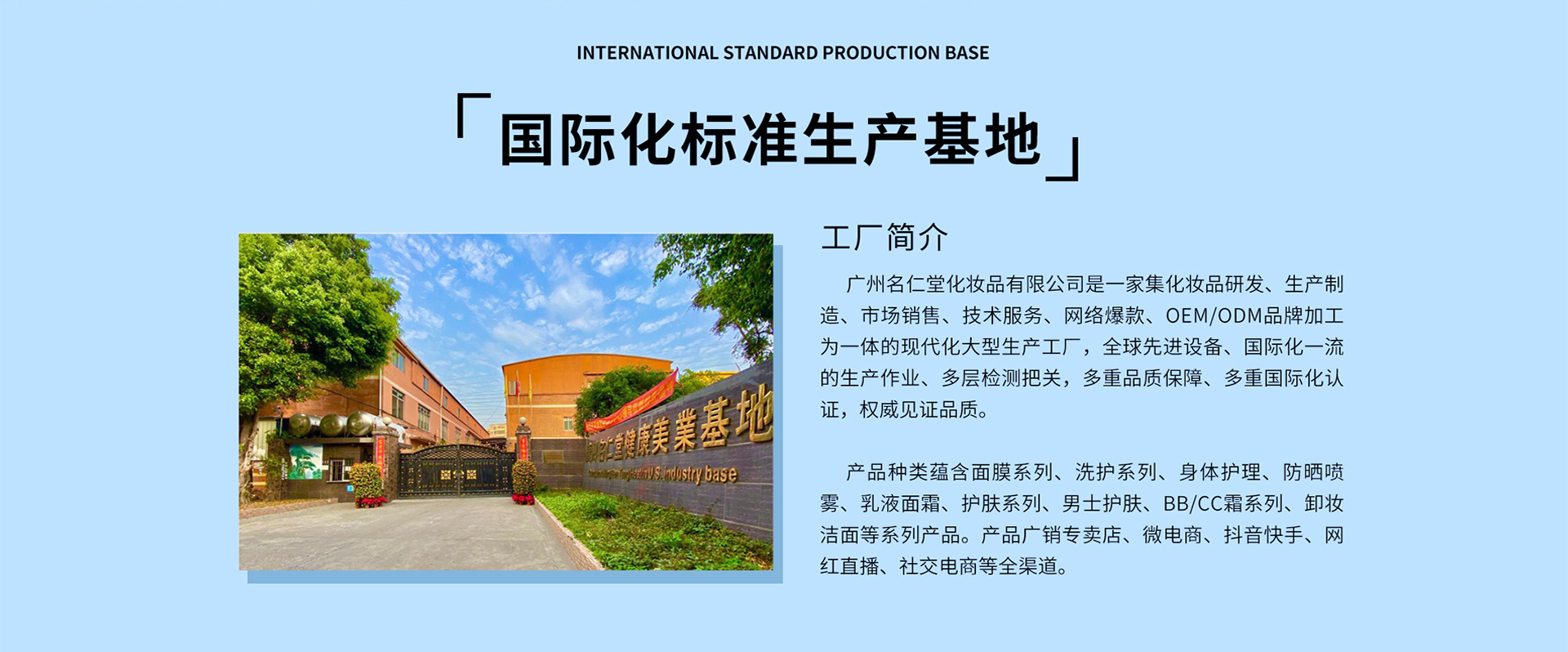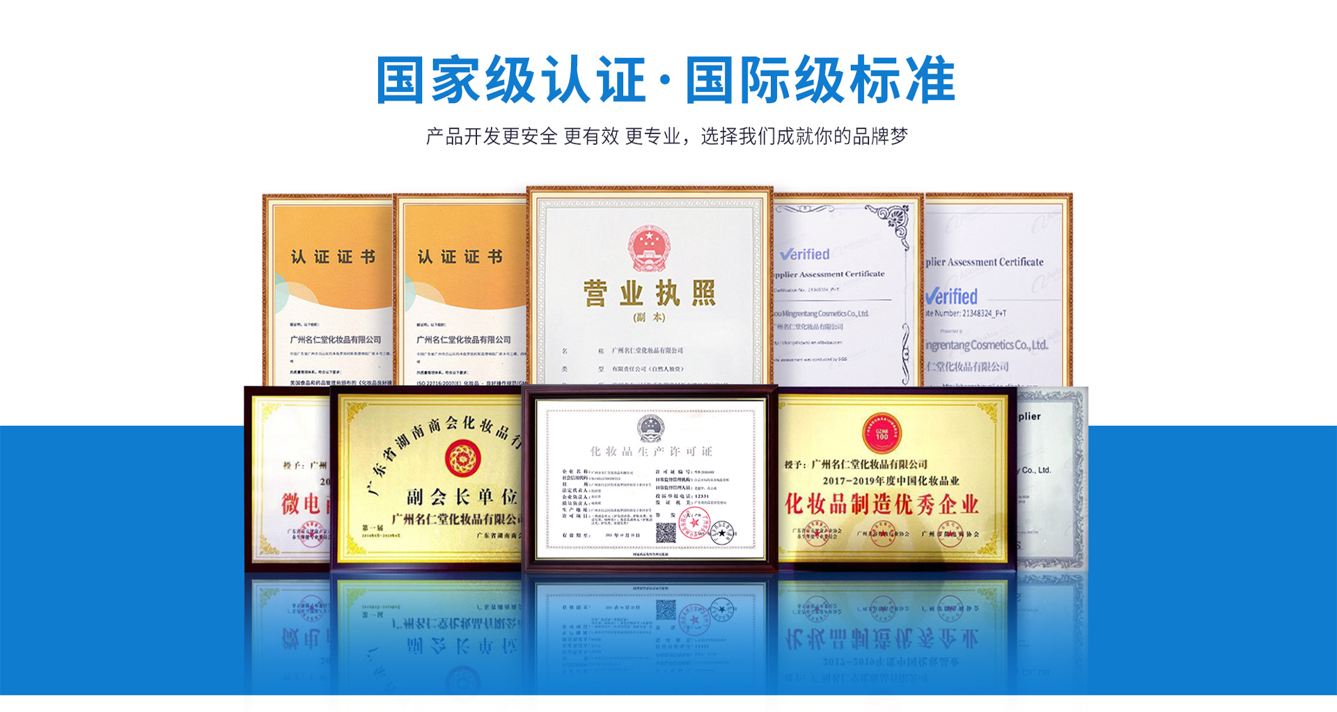 廣州市名仁堂化妝品有限公司是化妝品、包材原料等產品專業生產加工的公司,擁有完整、科學的質量管理體系。廣州市名仁堂化妝品有限公司的誠信、實力和產品質量獲得業界的認可。歡迎各界朋友蒞臨參觀、指導和業務洽談。