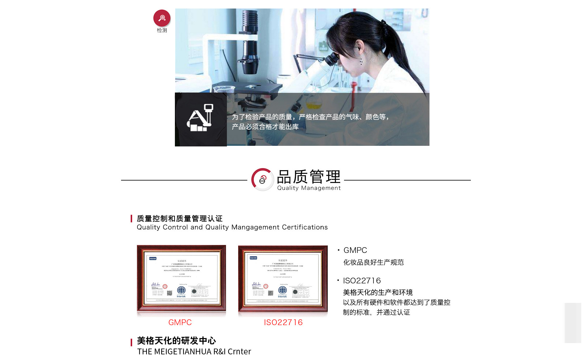 深圳市美格天化生物科技有限公司是一家集護膚品和洗浴用品的研發、生產及銷售為一體的現代化科技型企業。公司擁有一批醫學及精細化學專業的學術人才,對護膚品及洗浴品的研究具有獨到之處。可以為客戶的OEM定制提供高品質保證。公司的洗發水、沐浴露、百味凈、護膚品等優質產品客戶遍布網絡商城、專業美容院線及傳統批零等渠道。公司建有現代化的凈化生產車間環境,為你的產品質量提供全面保證。我們本著“受人之托,忠人于事,誠信為本,敬業于技”的企業理念,為與我司合作的每一個客戶,提供成功之路上的最大保障! 愿我們的產品和服務能給您創造更大的價值!