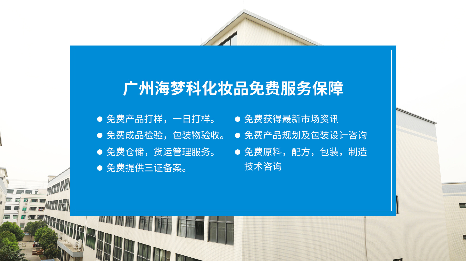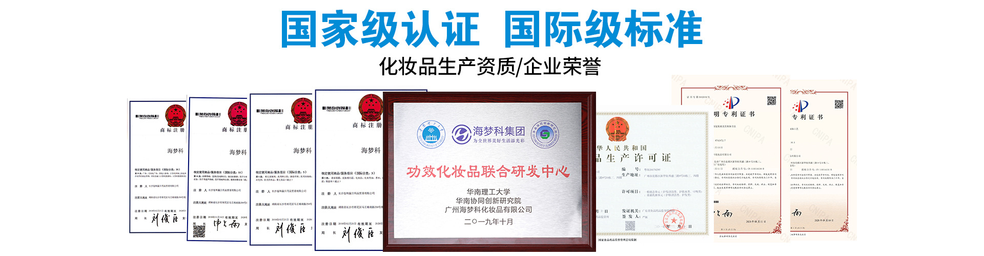 廣州海夢科化妝品有限公司是一家集美容化妝品研發、生產、銷售的大型尖端科技化妝品生產公司,廠房面積12000㎡,坐落于廣州工業之都花都區邦盛三路9號科維工業園。公司秉承“以用戶為核心、以誠立業、以質取勝,創新服務”的經營理念,以產品品質為企業發展之靈魂、以優質服務為企業強健之命脈!以市場為導向,以信譽為根本。所生產產品質地精良、造型美觀、配方成熟、達到國家食品藥品級標準,深受廣大消費者喜愛。廠房規模大,設備高端先進、技術精良!各類作業車間嚴格按照化妝品無塵車間的規范要求,嚴格按照國家相關衛生條例建設,空氣質量達到國家食品級加工的標準,是一家健全、成熟、穩定的大型綜合化妝品生產企業