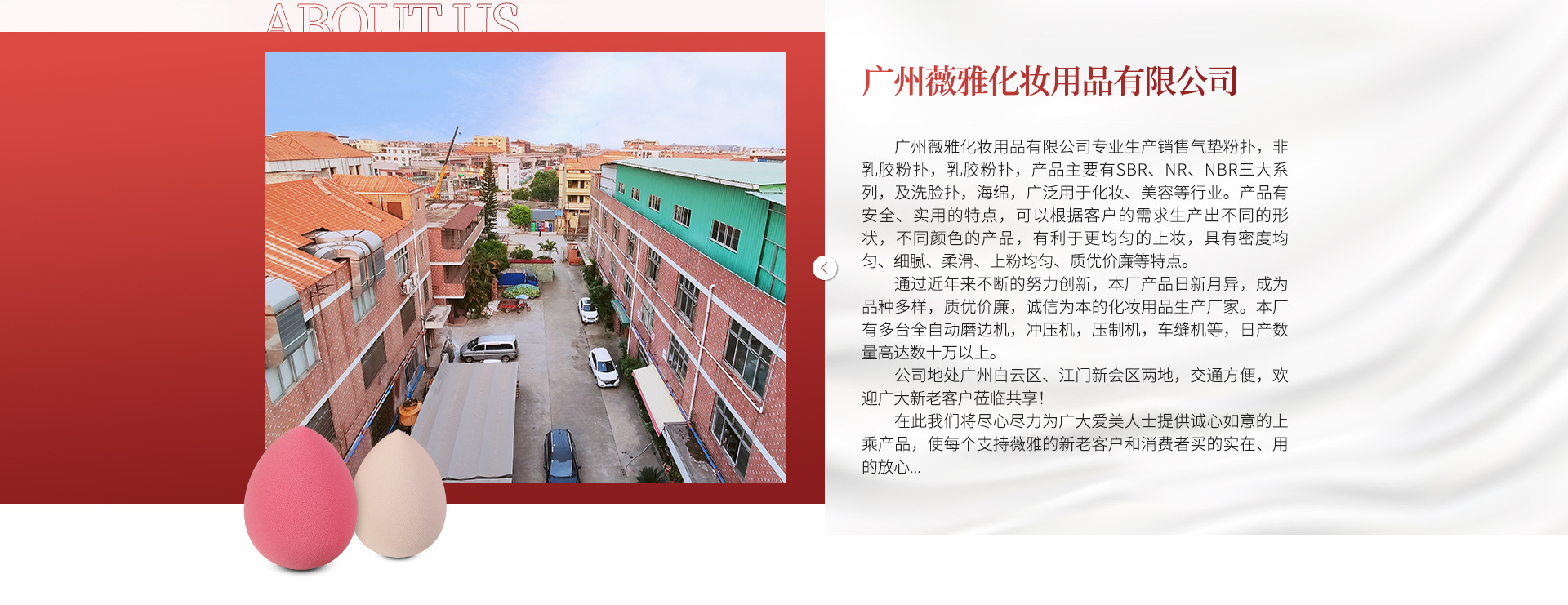 廣州薇雅化妝用品有限公司專業生產銷售氣墊粉撲,乳膠粉撲,產品主要有SBR、NR、NBR三大系列,及洗臉撲,海棉,廣泛用于化妝、美容等行業。產品親膚性良好,沒有任何皮膚刺激,安全環保,可以自然降解以及循環使用。同時產品可以根據客戶的需求生產出不同的形狀,不同形狀的產品有利于更好更均勻的上妝,具有密度均勻、細膩、柔滑、上粉均勻、質優價廉等特點。