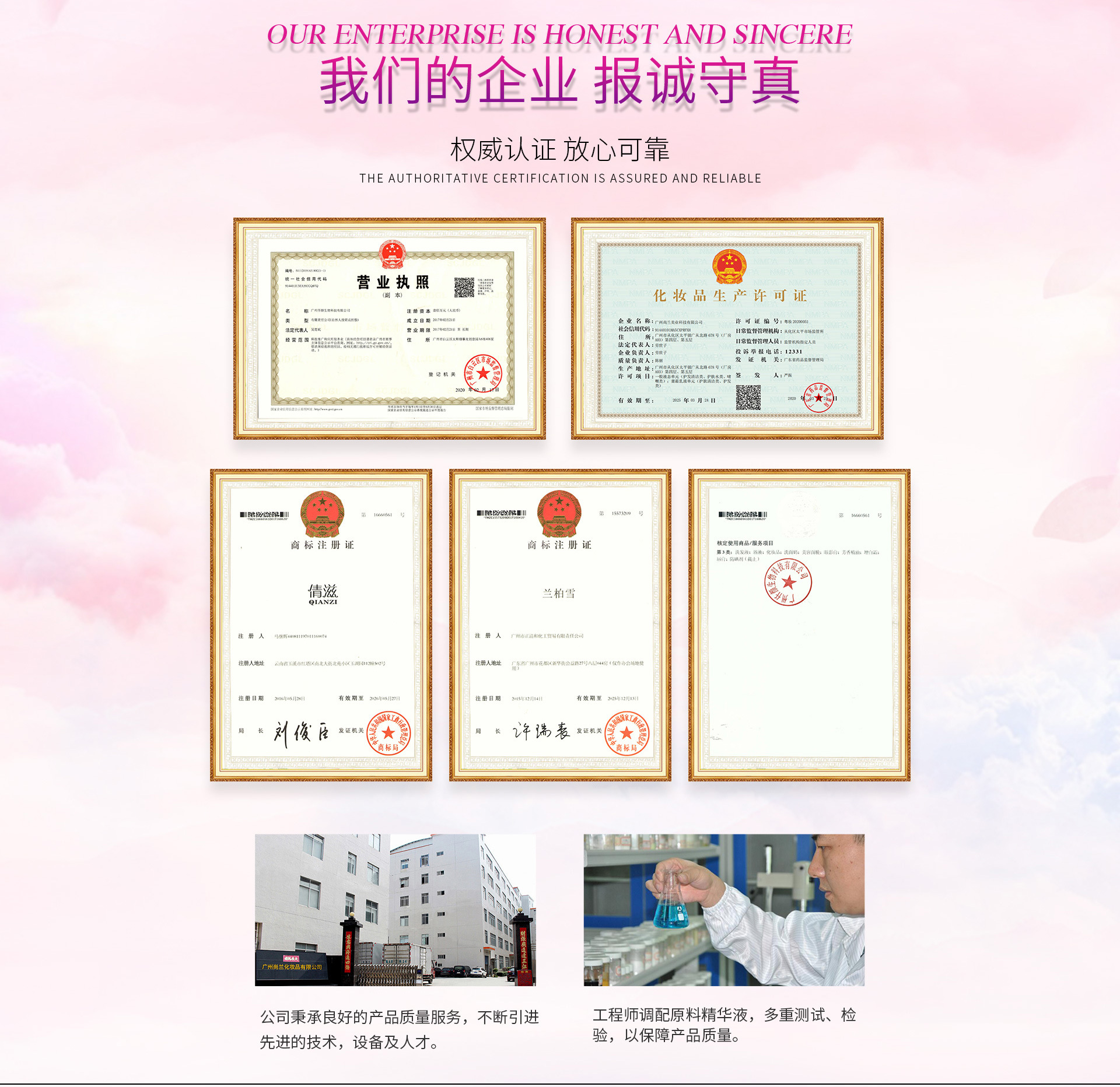 廣州仟顏生物科技有限公司是一家集研發、生產、銷售為一體的專業化妝品企業,提供批發、零售、代理和代加工貼牌OEM/ODM服務,我們所做的產品有眼霜,手霜,精油,精華液,原液,精華素,面膜,面膜貼、面貼膜,眼膜,眼膜貼,眼貼膜,面霜,臉霜,洗手液,洗發水,沐浴露,祛斑產品,豐胸產品,減肥產品,脫毛產品,衣物柔順劑,洗衣液,廚房清潔劑,潔廁劑,地板清潔劑等。  在行業內頗具口碑,坐落在交通便利、物流發達的廣州白云區龍歸。每年均通過ISO9001,GMPC(SGS),intertek深度認證,并連續多年是廣州質量協會單位。 環境優美,廠房面積45000平方米,生產車間環境完全按照GMPC認證所需要的條件建設,并一次性通過“ISO9001-2008” 質量認證和“GMPC”認證。公司目前擁有多條現代化的生產線,多臺/套國際、國內先進乳化、自動灌裝、滅菌、檢驗檢測等儀器,具備各類膏霜、洗護、美容化妝產